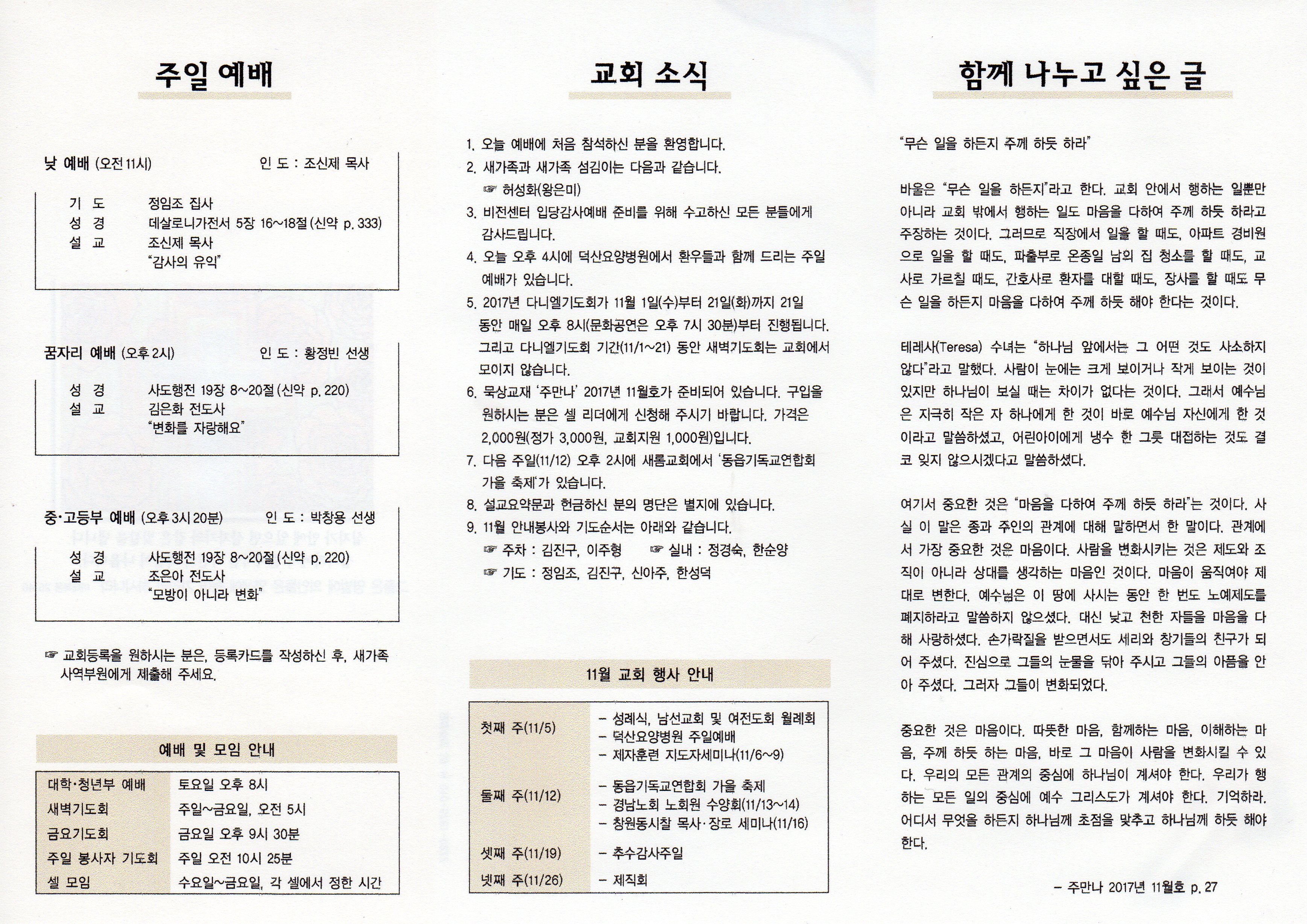 2017년 11월 05일 주보입니다.