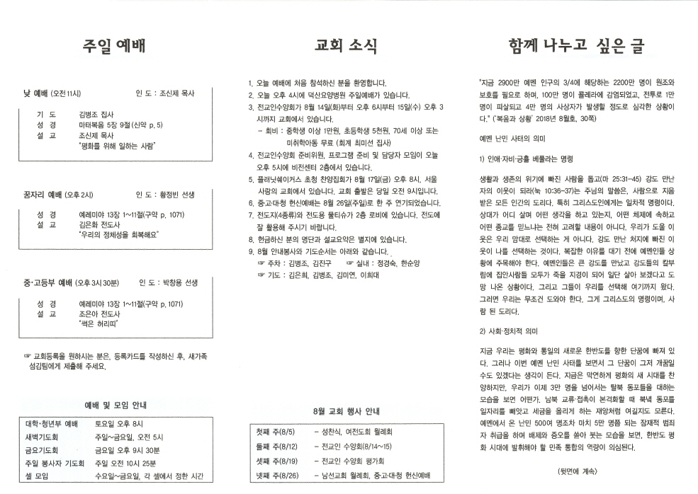 2018년 8월 12일 주보입니다.