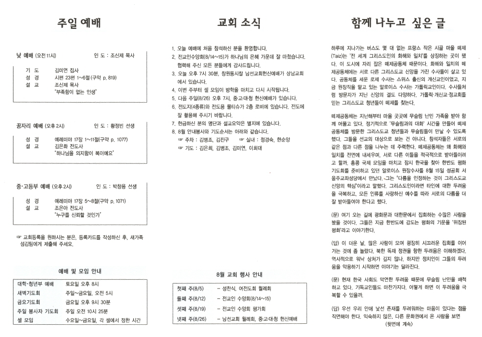 2018년 8월 19일 주보입니다.