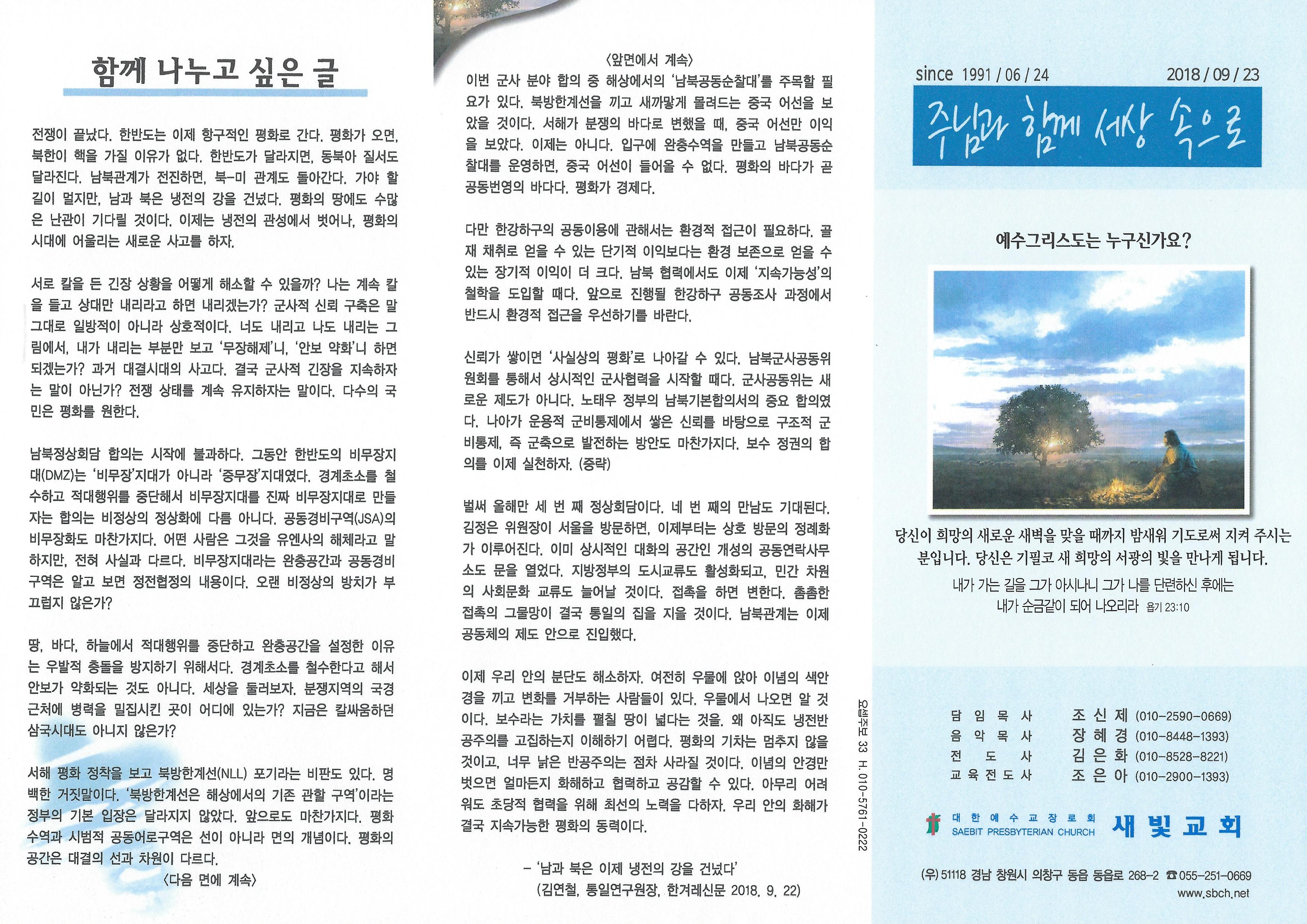 2018년 9월 23일 주보입니다.