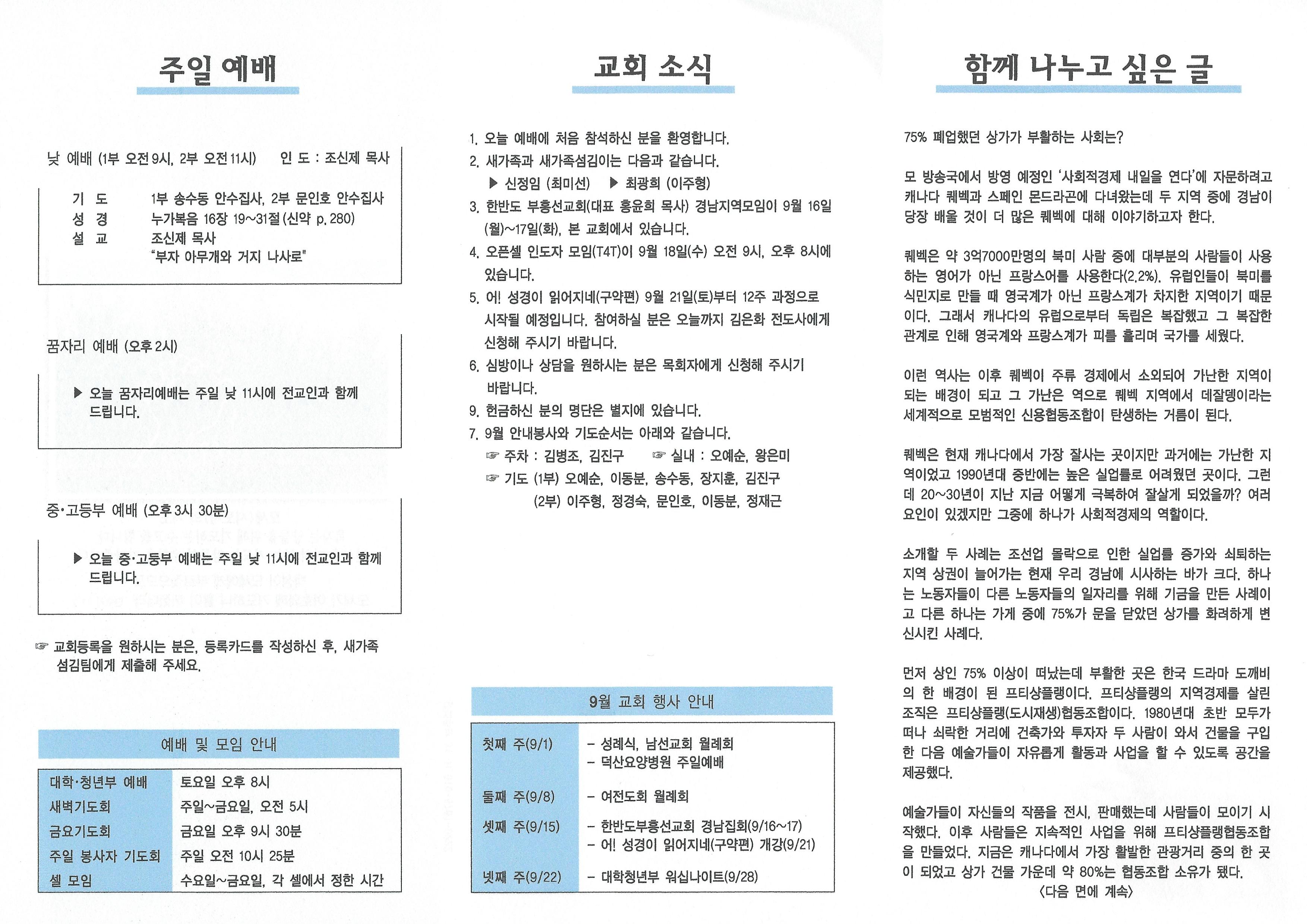 2019년 9월 15일 주보입니다.
