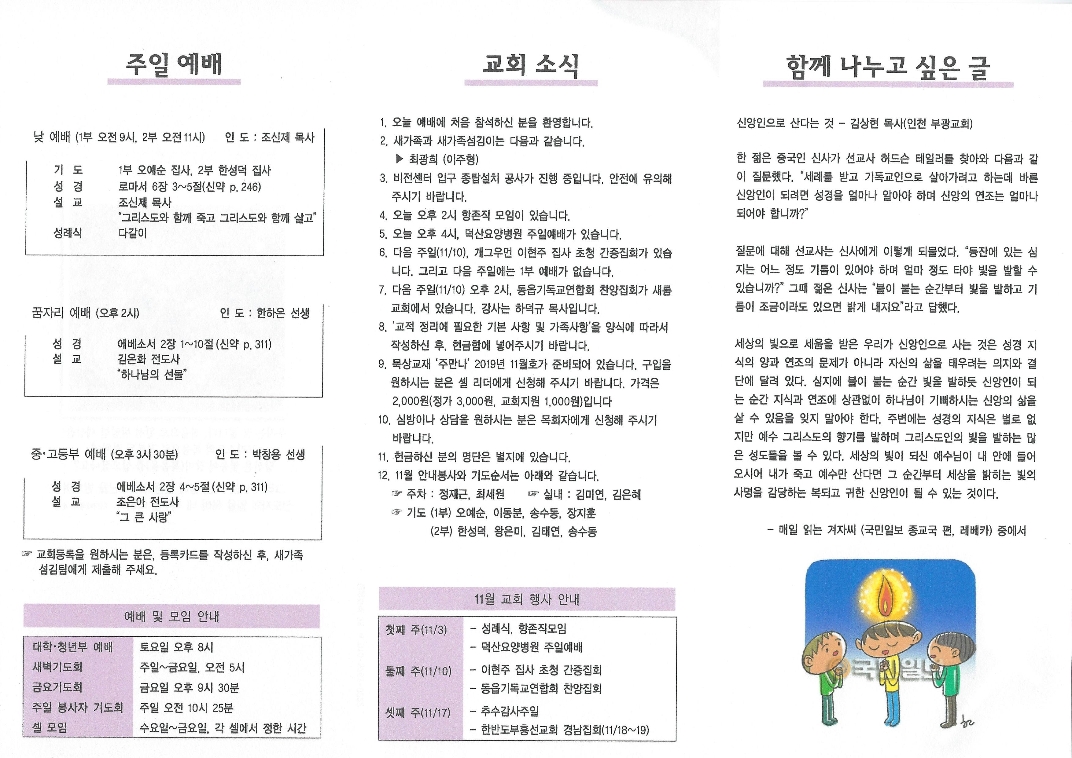 2019년 11월 3일 주보입니다.