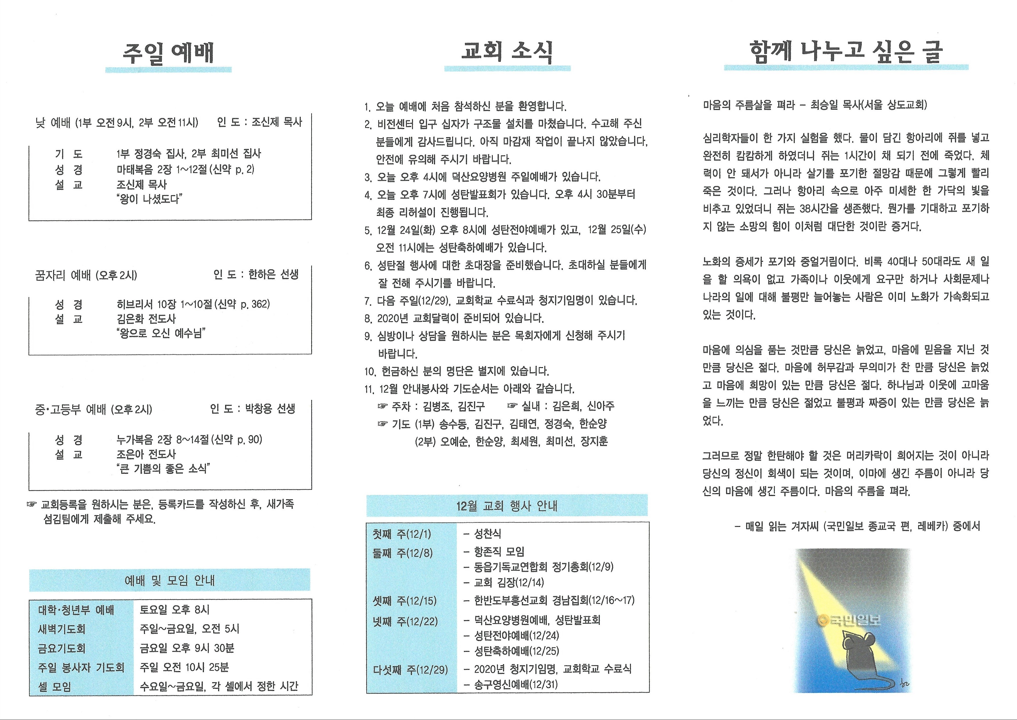 2019년 12월 22일 주보입니다.
