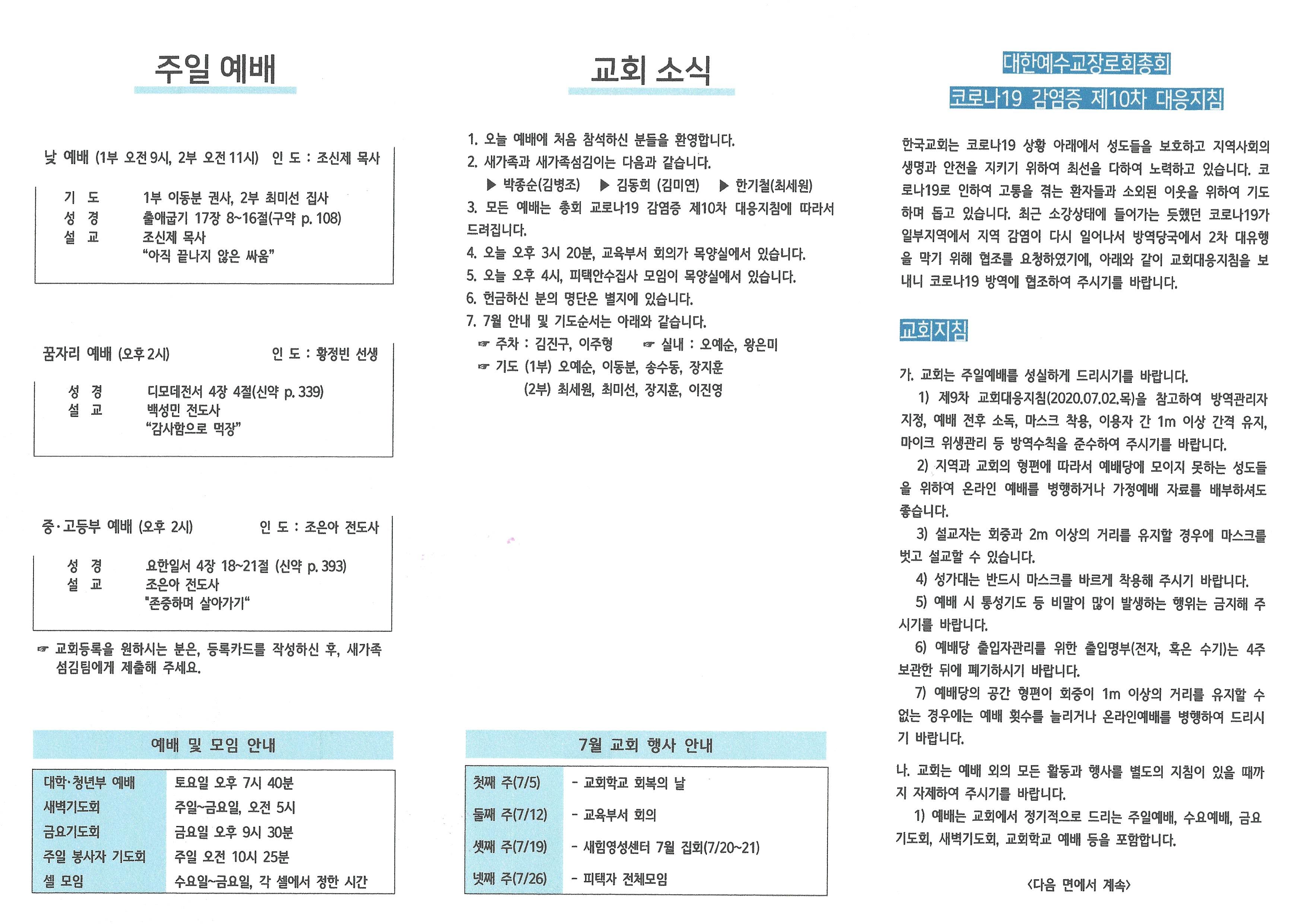 2020년 7월 19일 주보입니다.