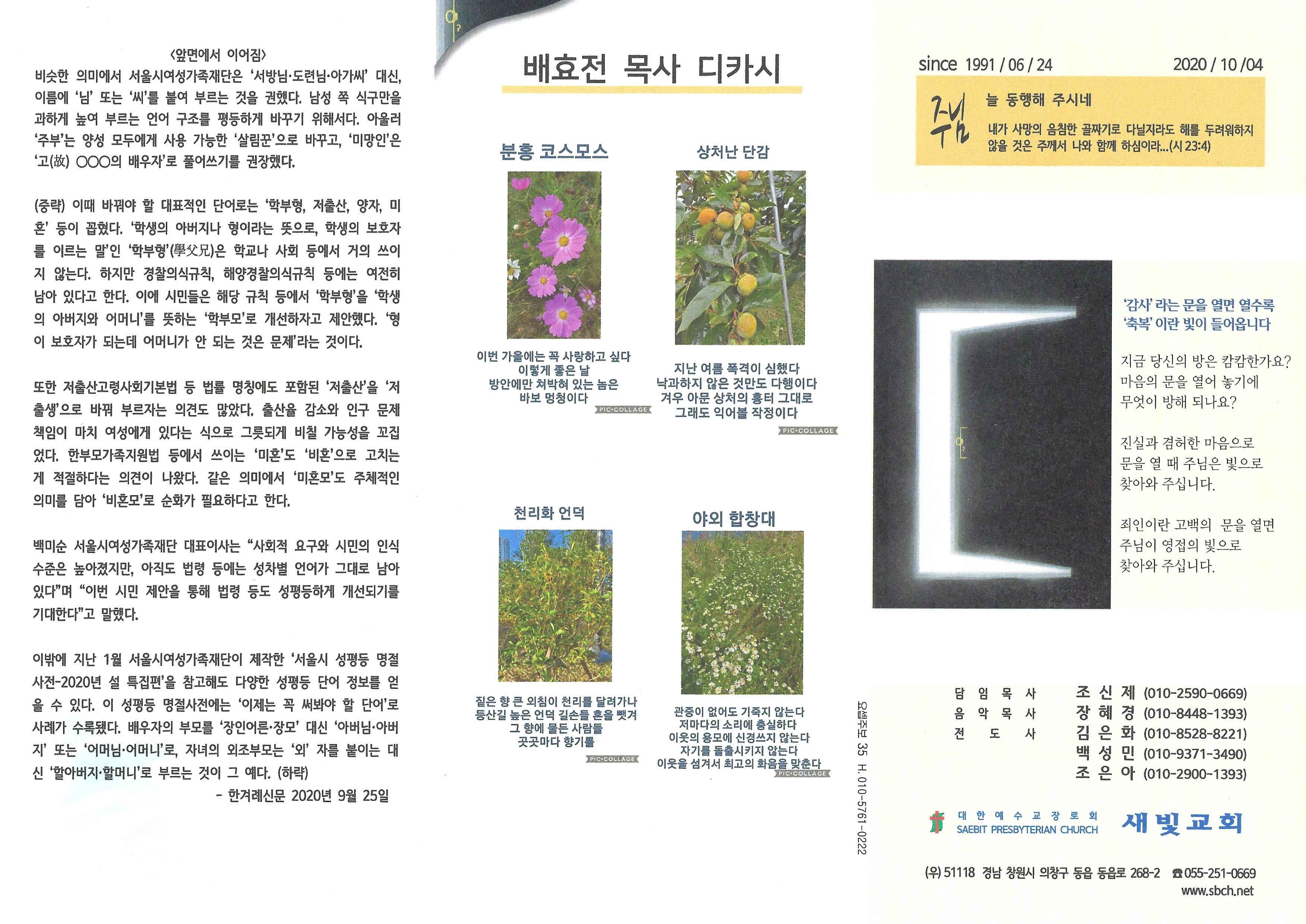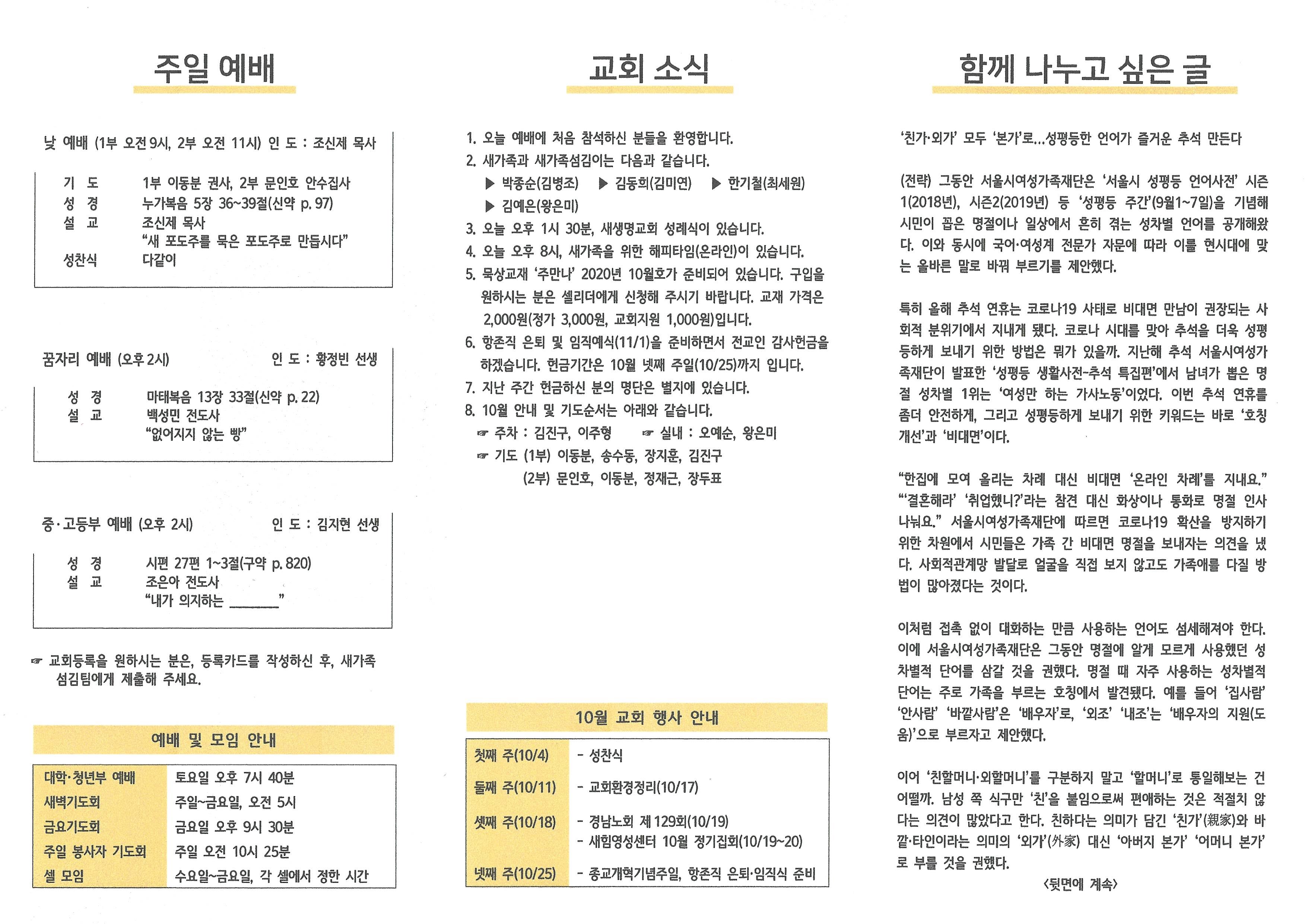 2020년 10월 4일 주보입니다.