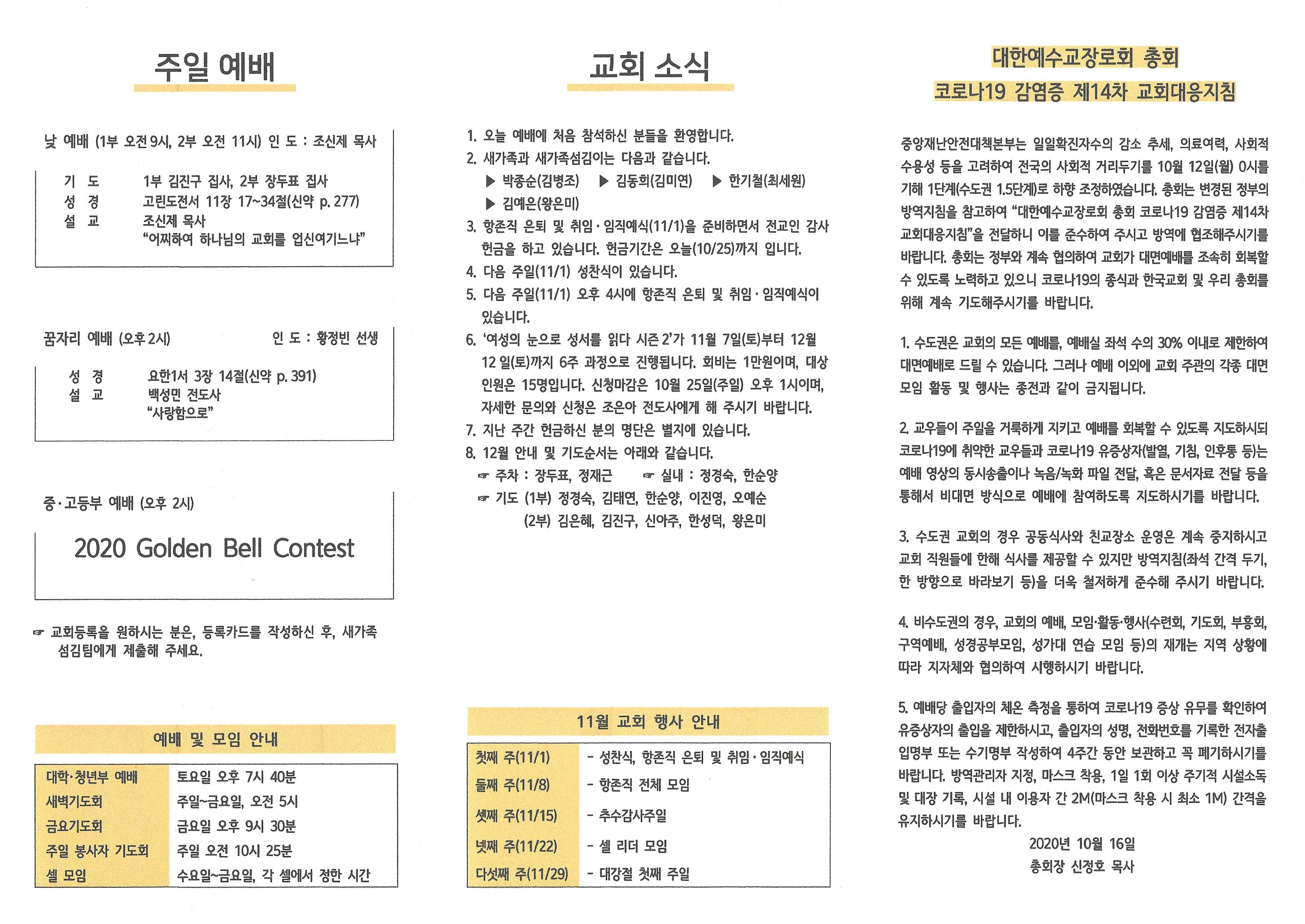 2020년 10월 25일 주보입니다.