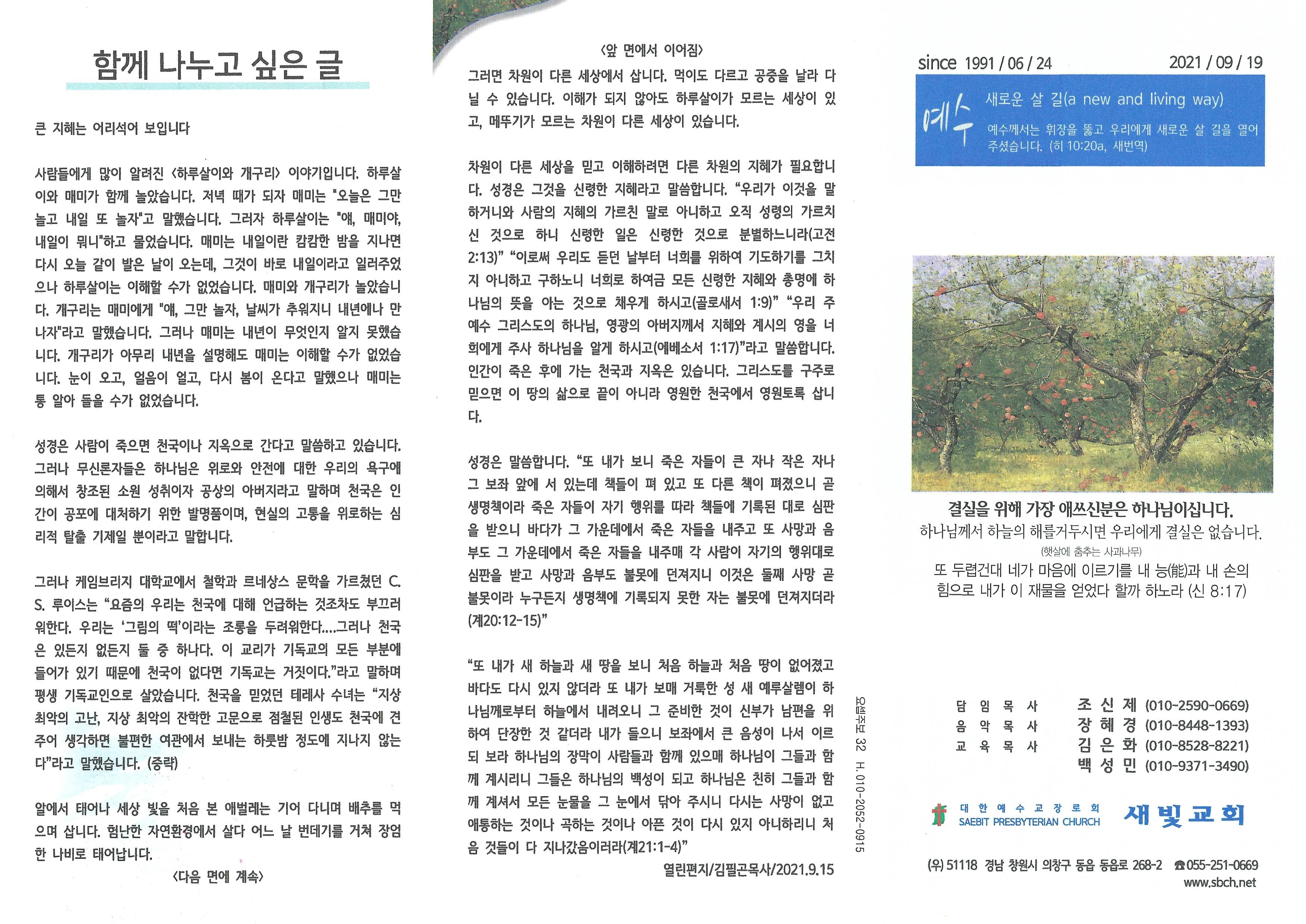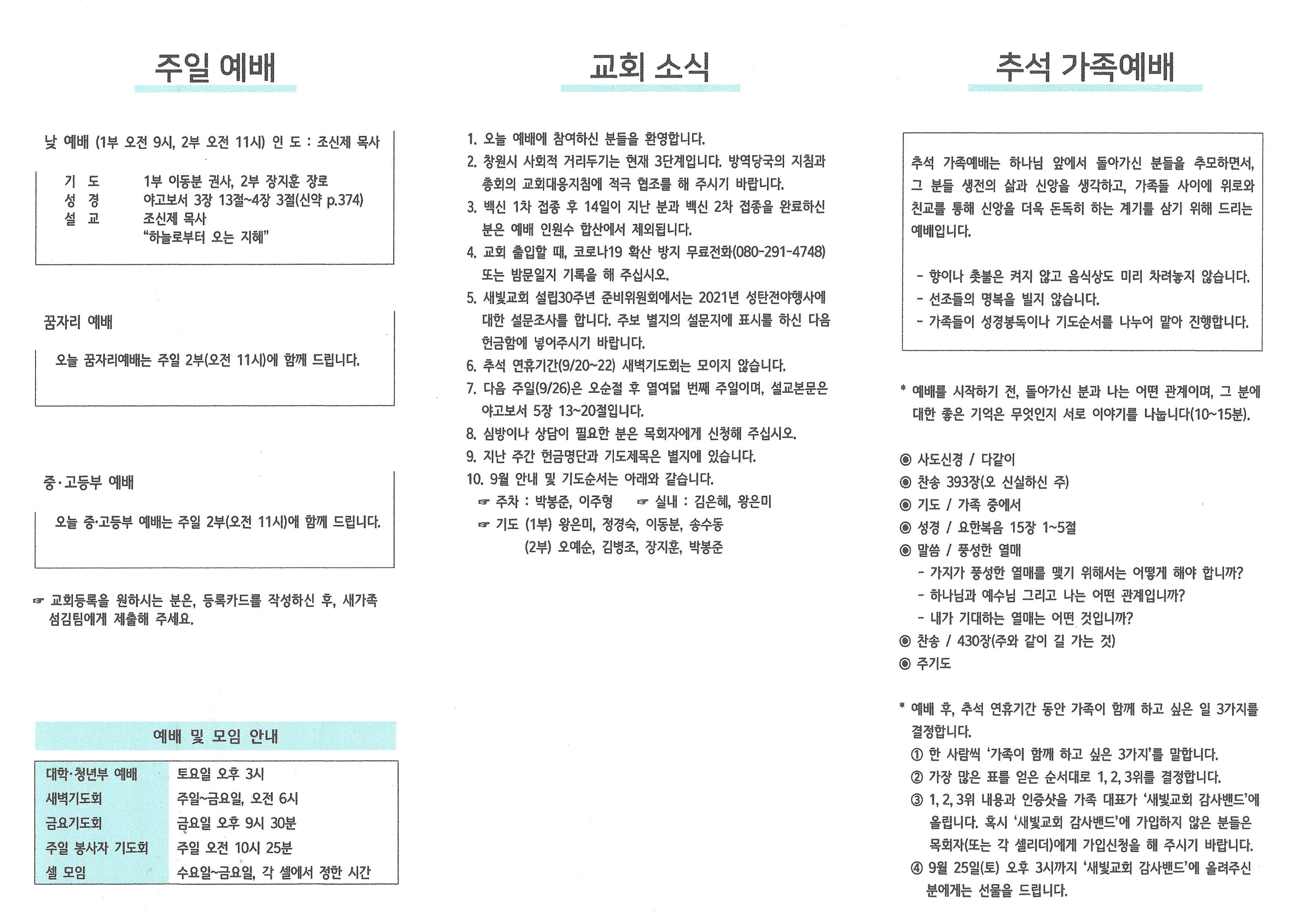 2021년 9월 19일 주보입니다.