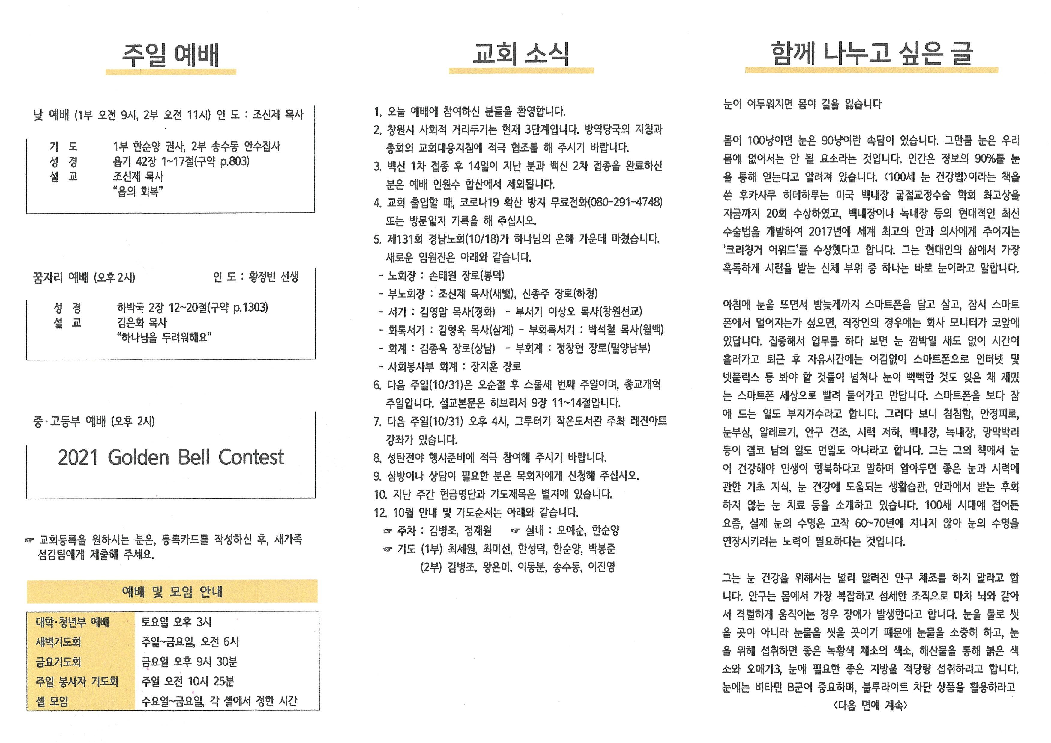 2021년 10월 24일 주보입니다.