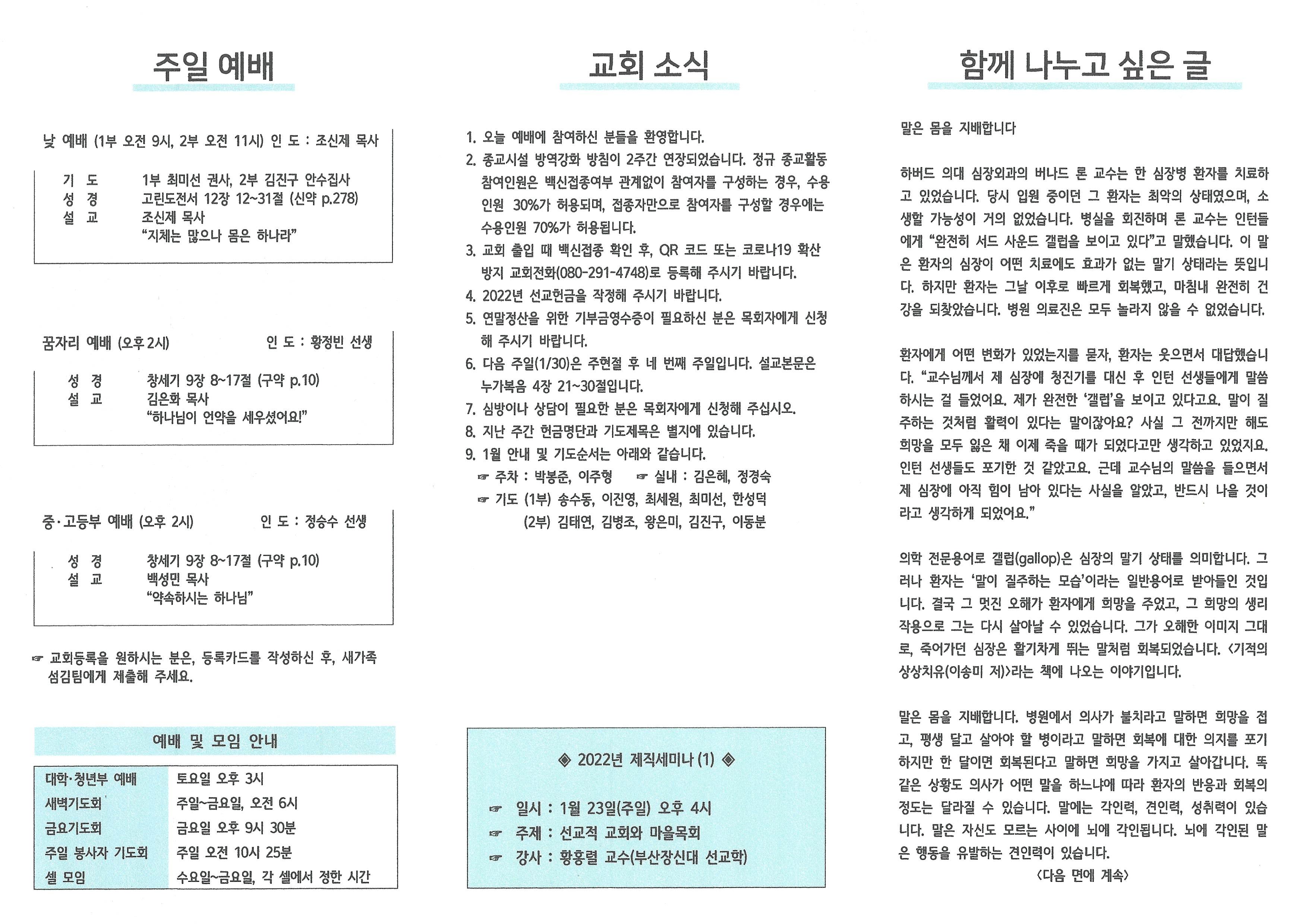 2022년 1월 23일 주보입니다.