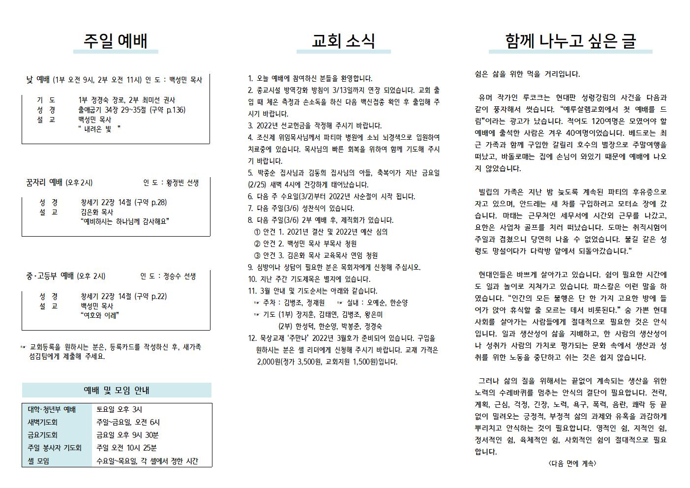 2022년 02월 27일 주보입니다.