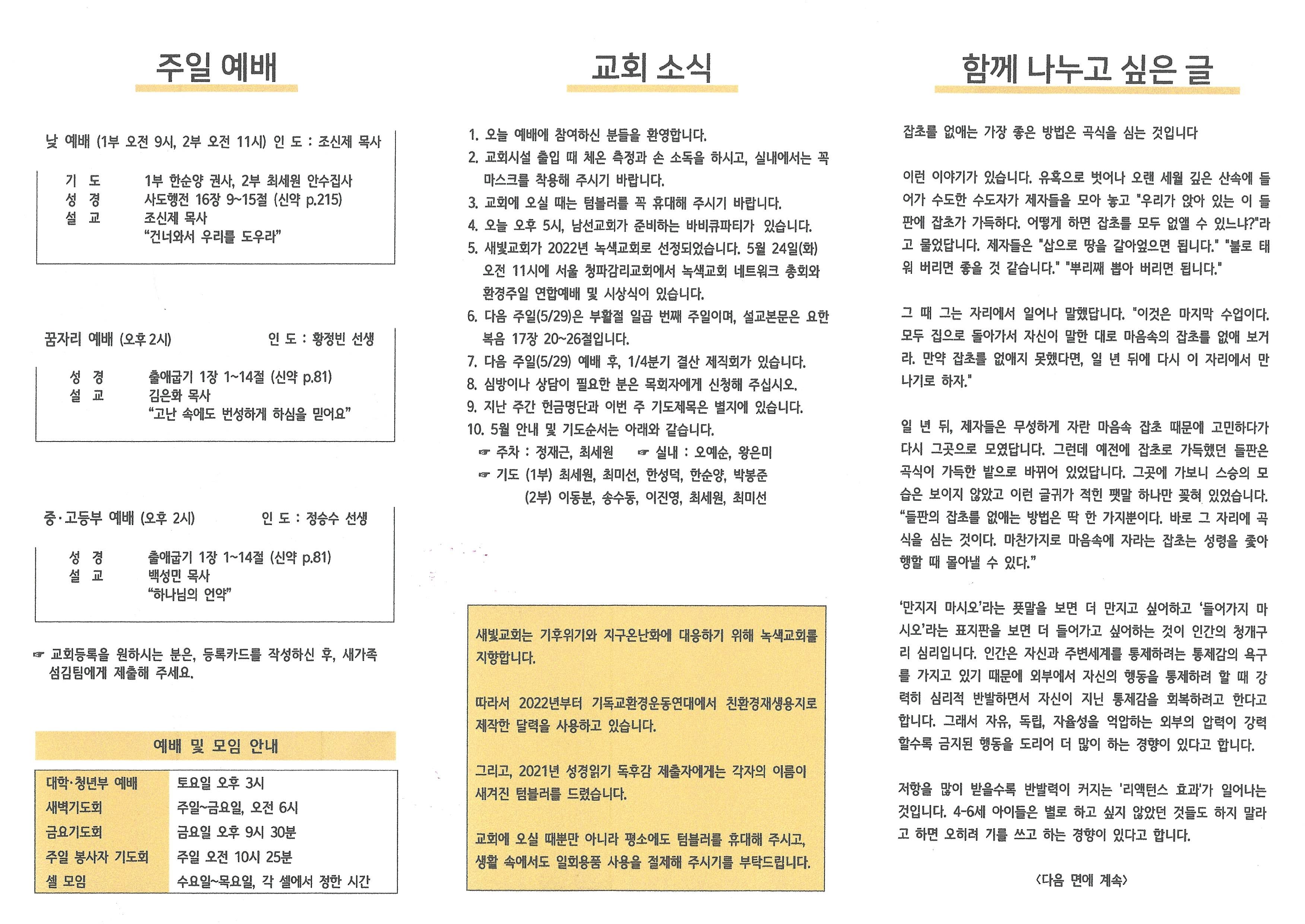 2022년 5월 22일 주보입니다.