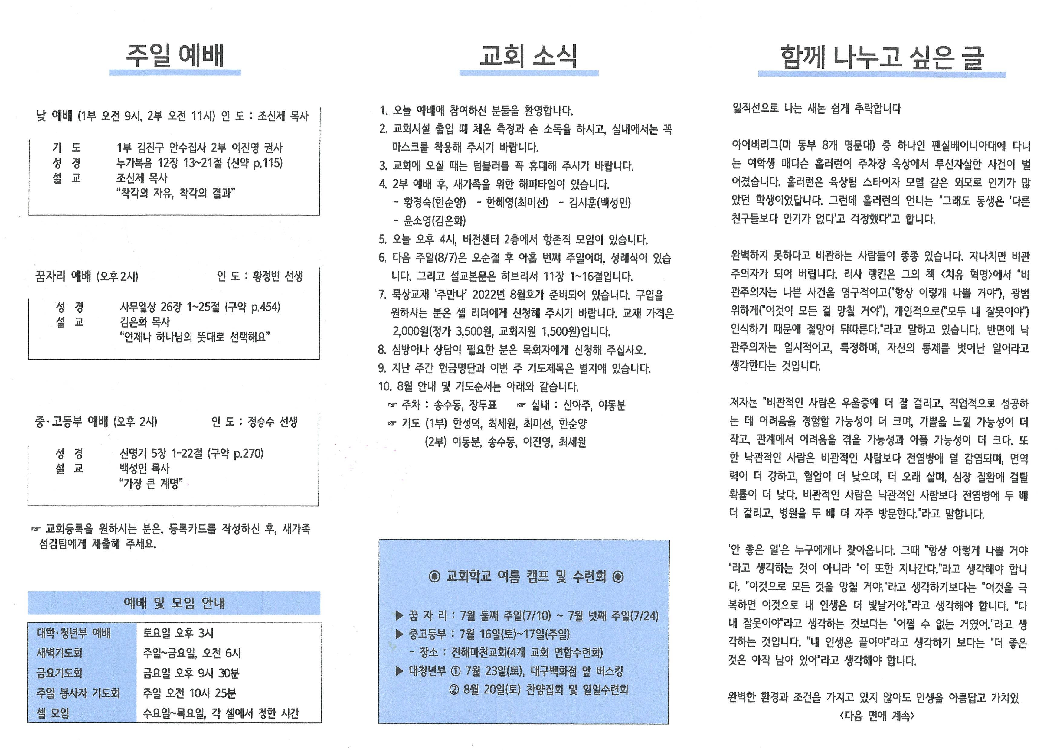 2022년 7월 31일 주보입니다.