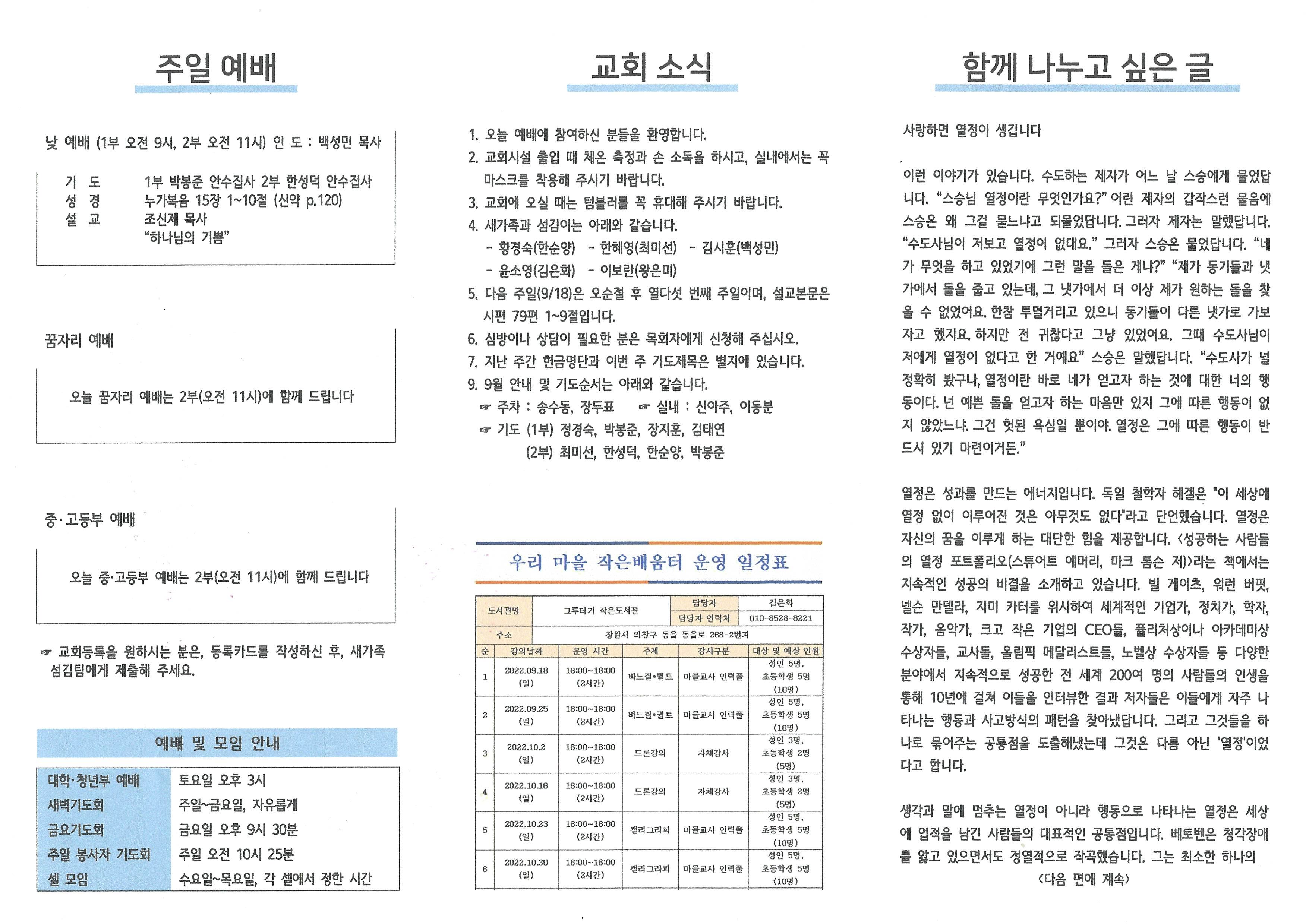 2022년 9월 11일 주보입니다.