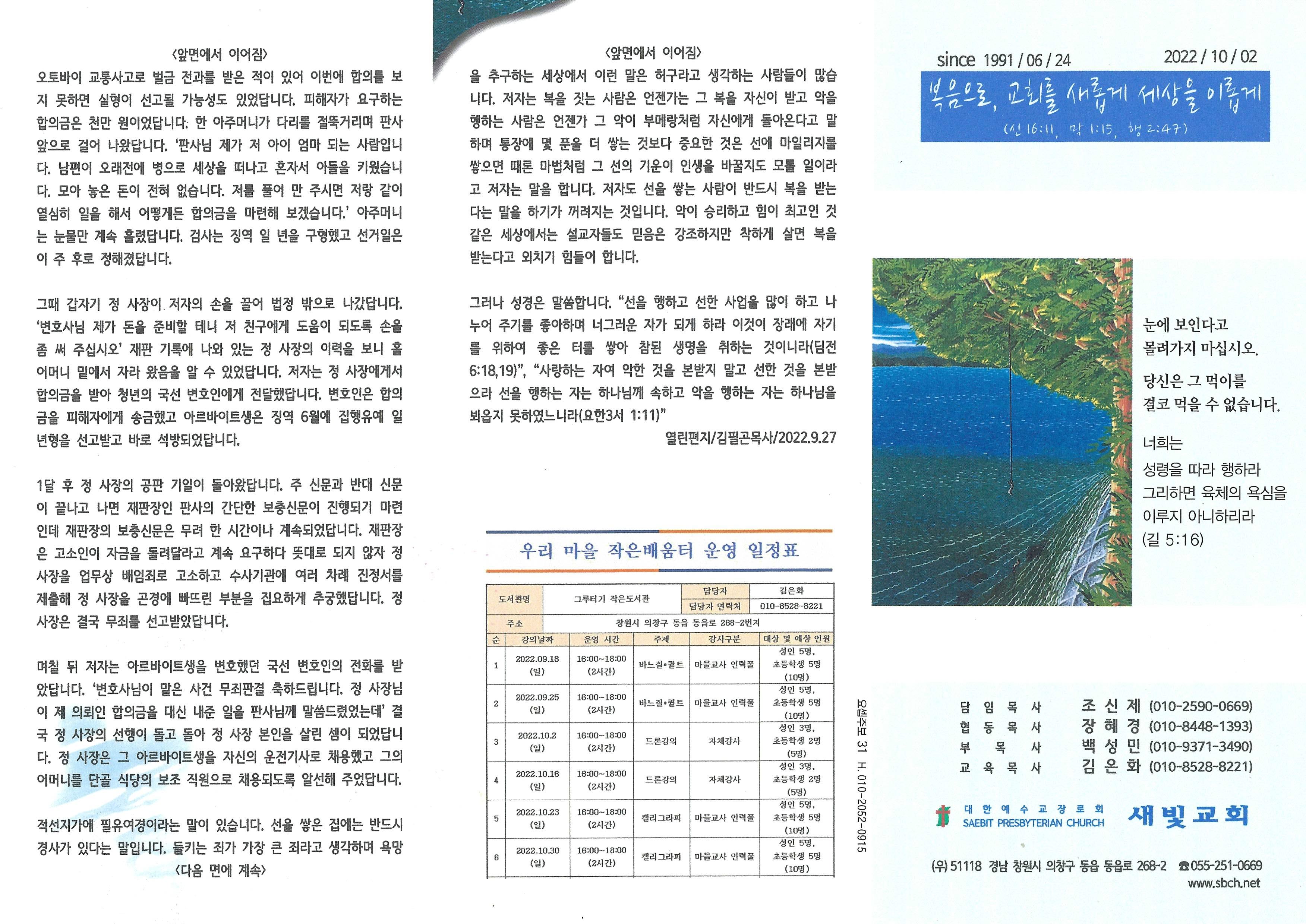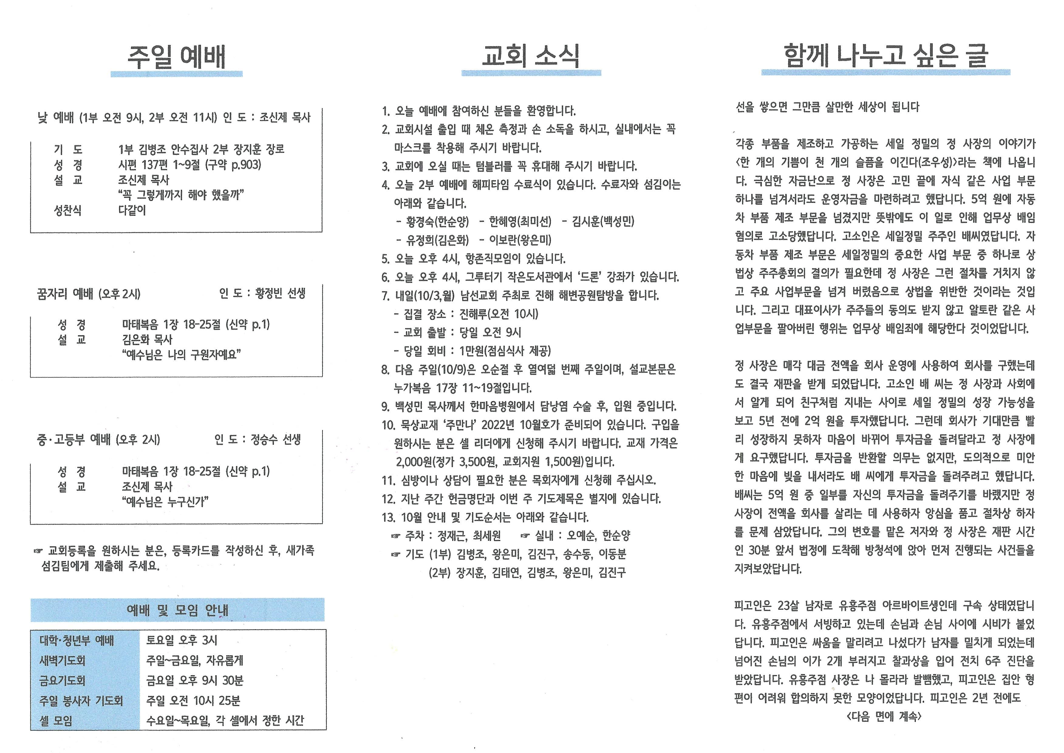 2022년 10월 2일 주보입니다.