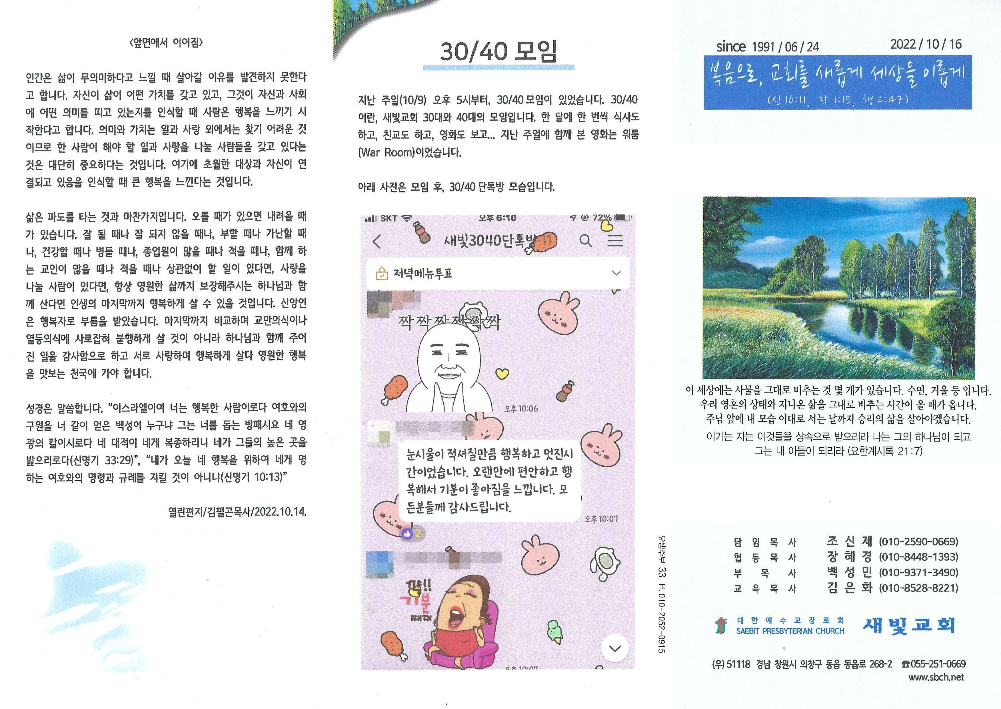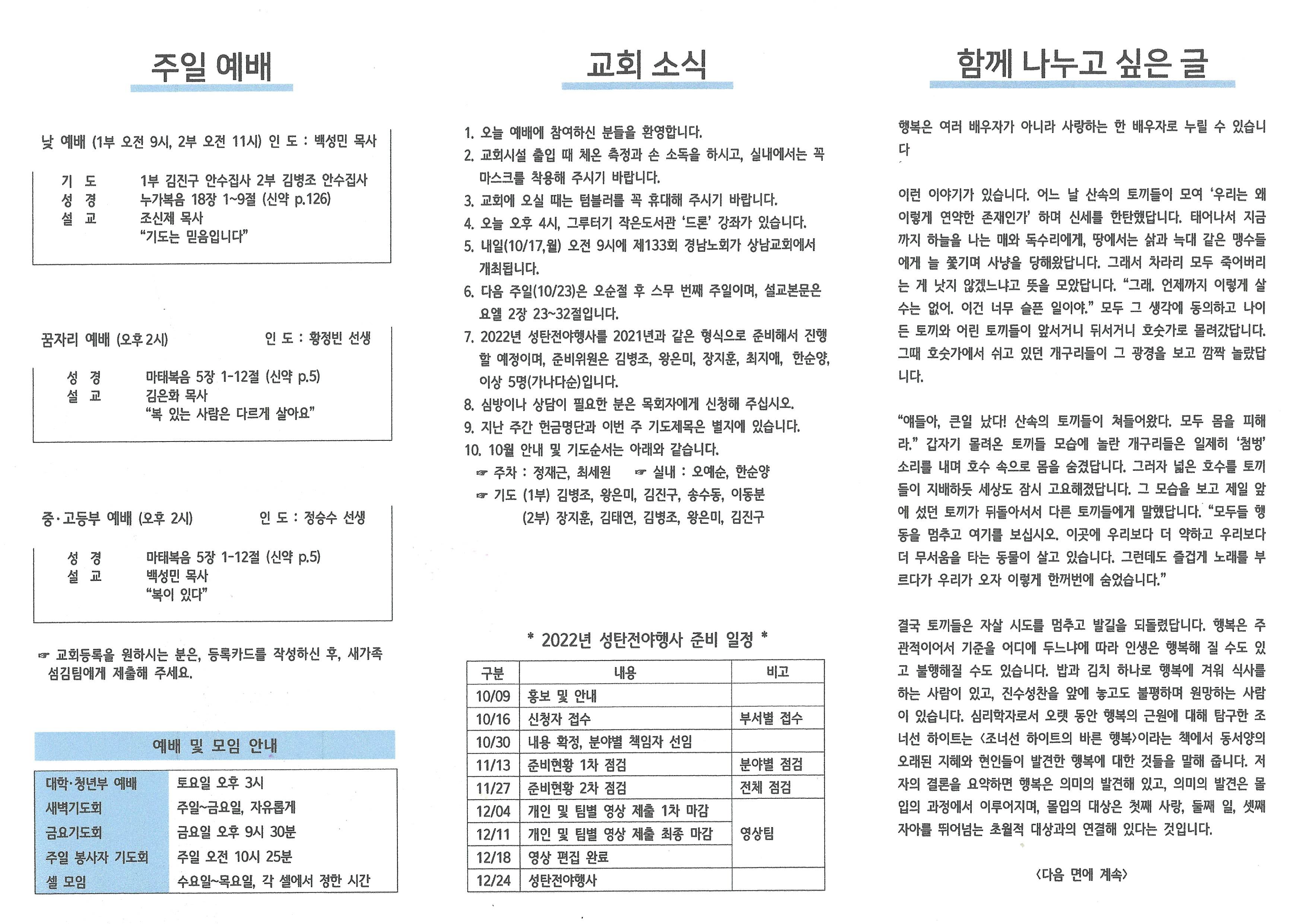 2022년 10월 16일 주보입니다.