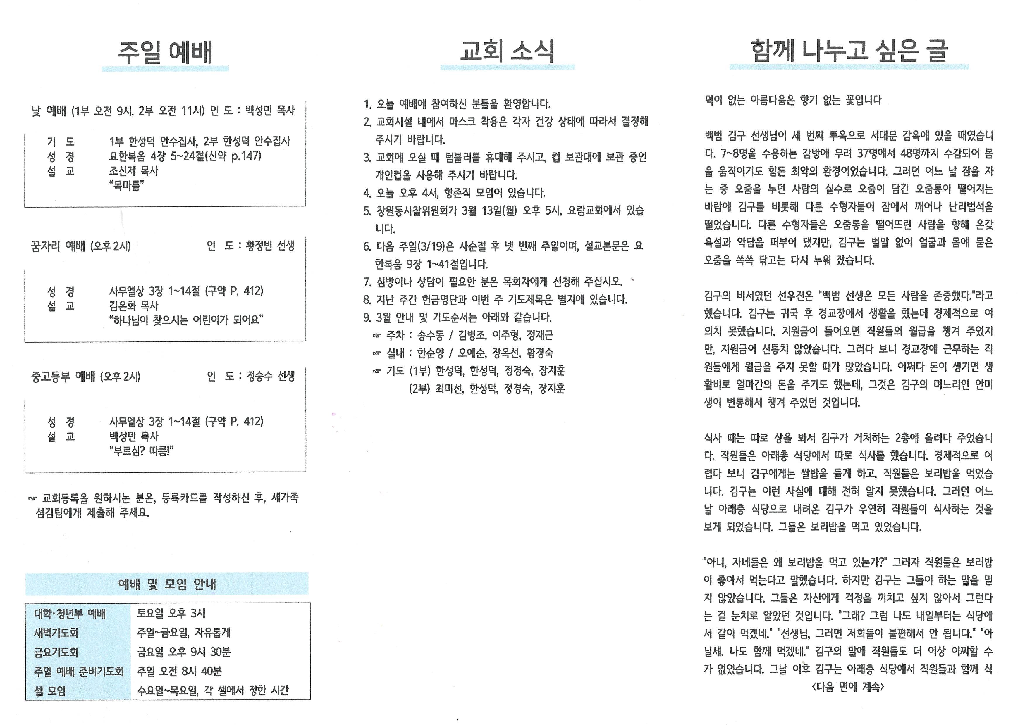 2023년 3월 12일 주보입니다.