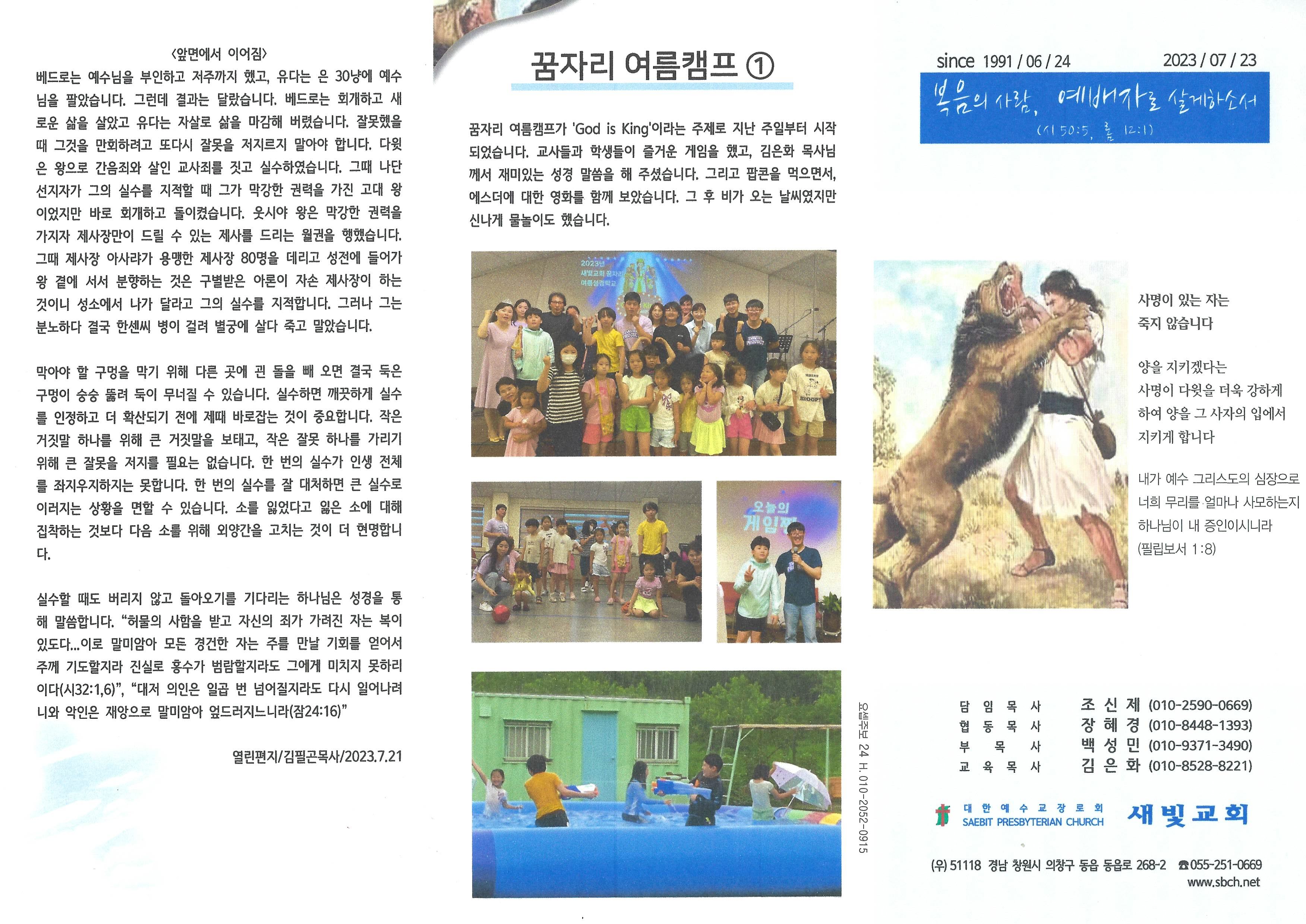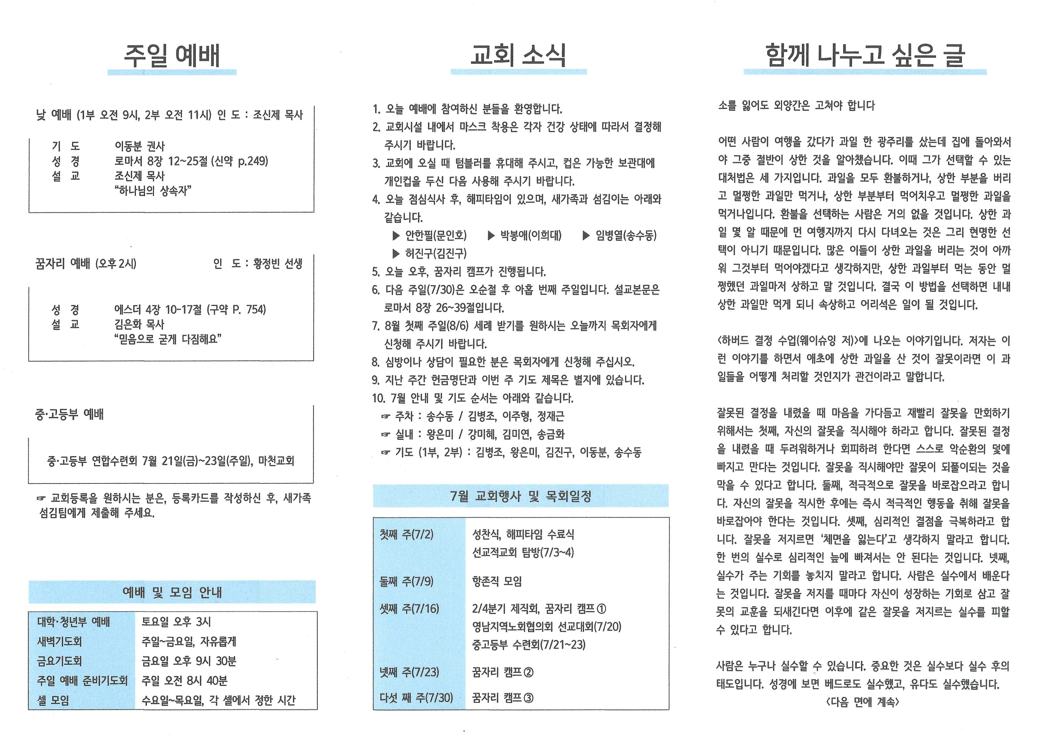 2023년 7월 23일 주보입니다.