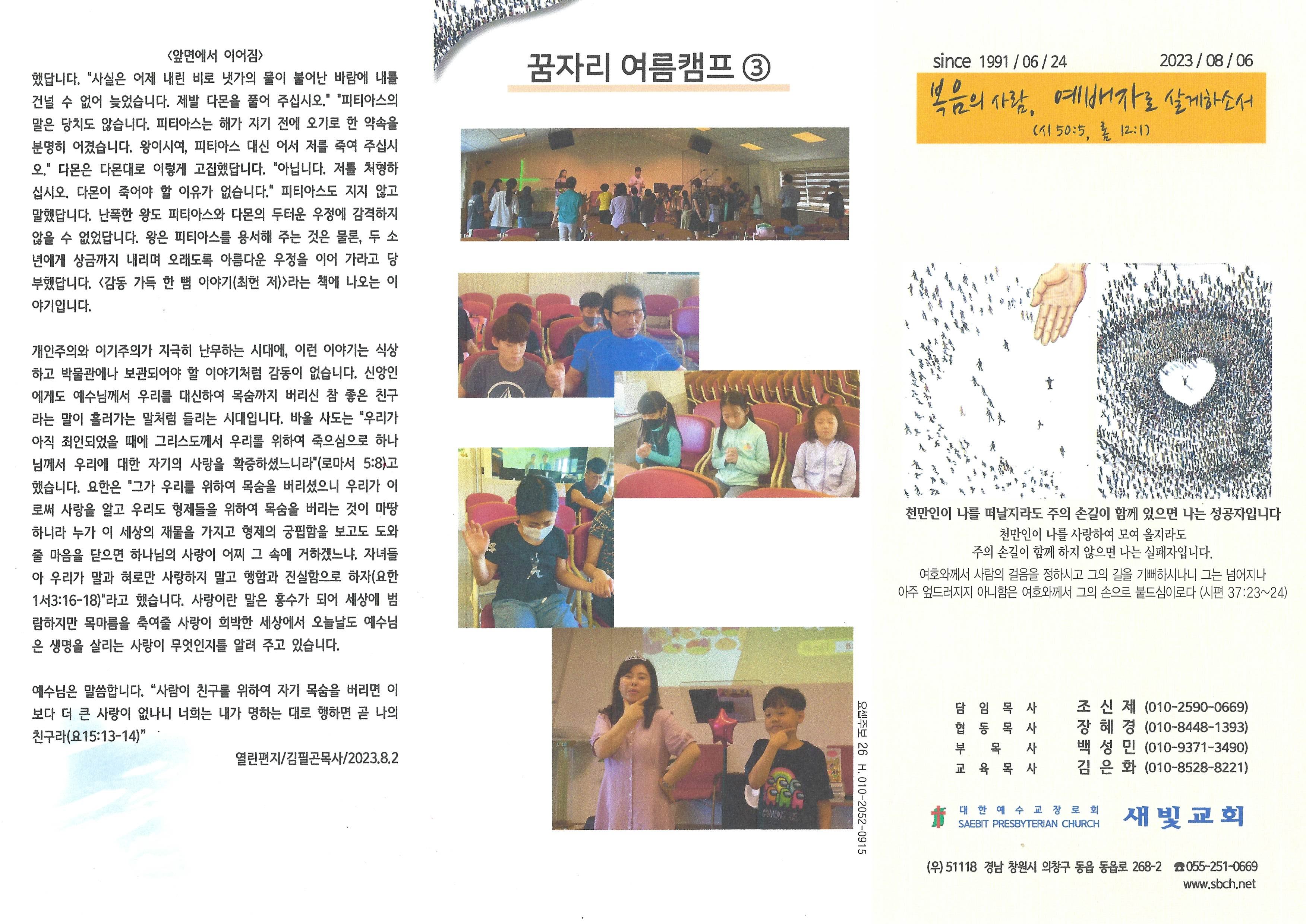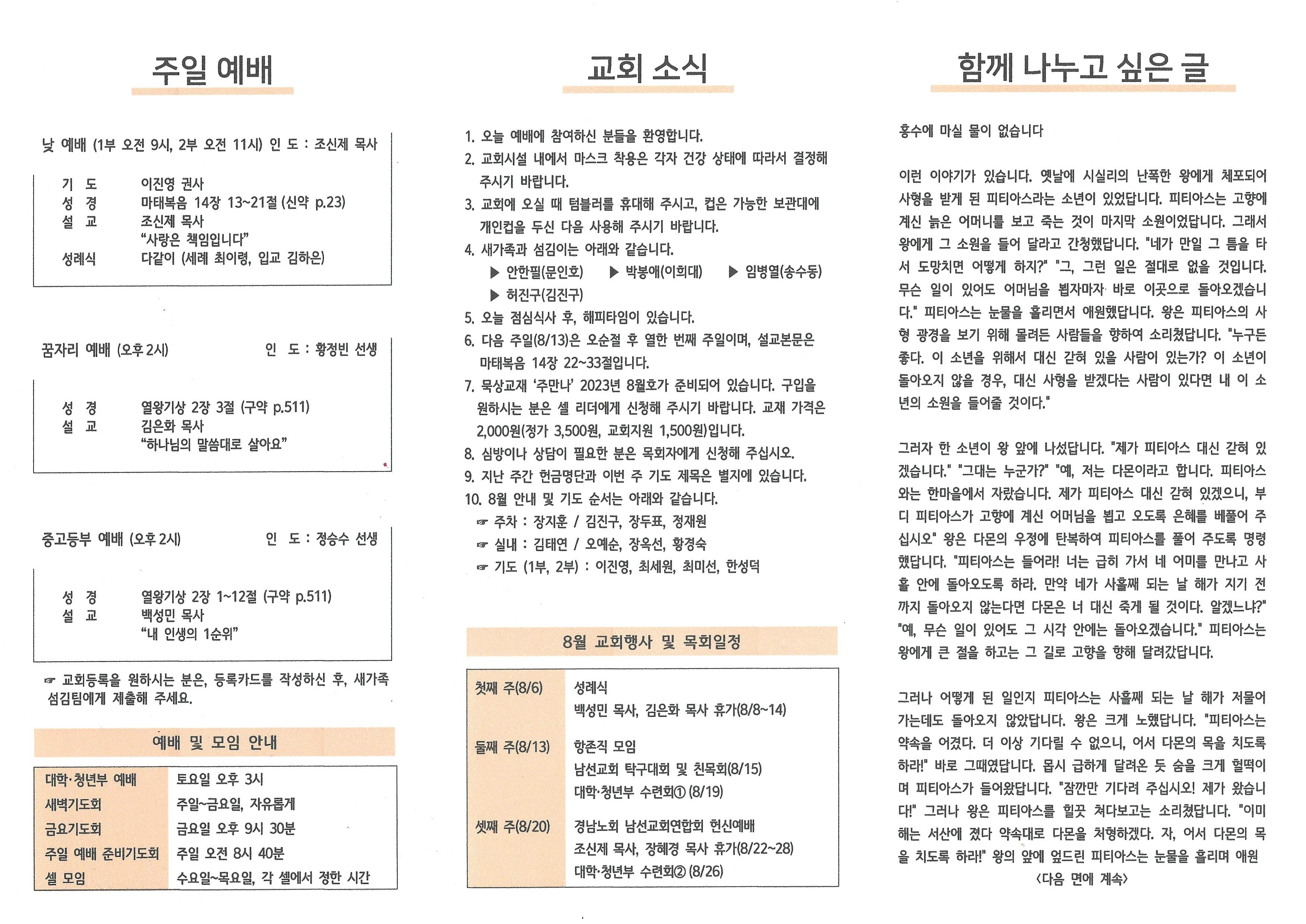 2023년 8월 6일 주보입니다.