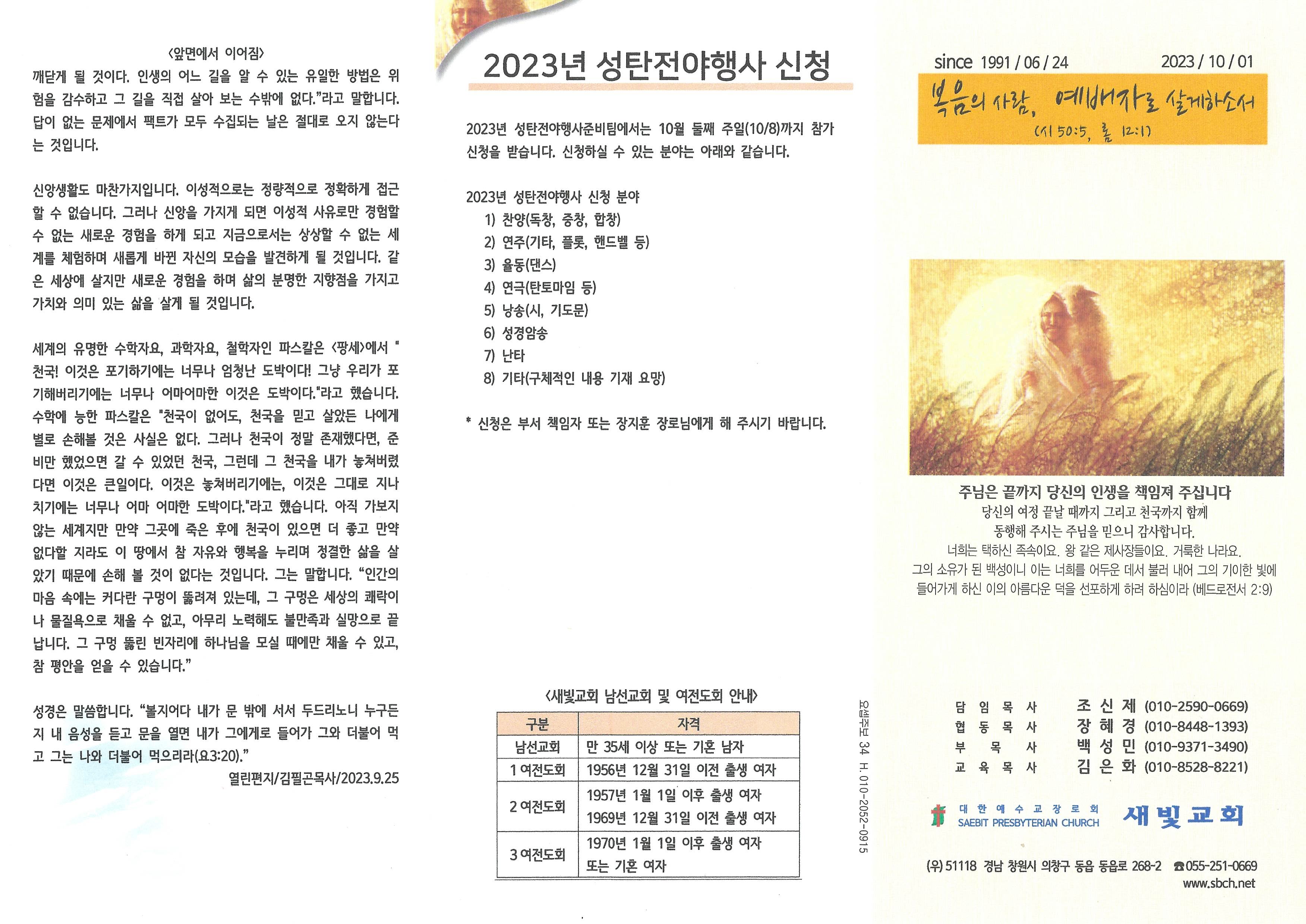 2023년 10월 1일 주보입니다.