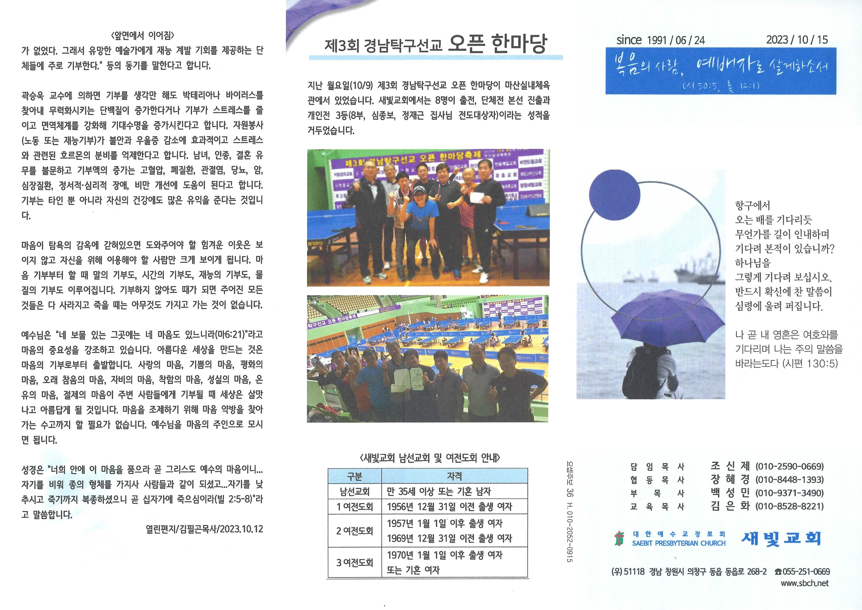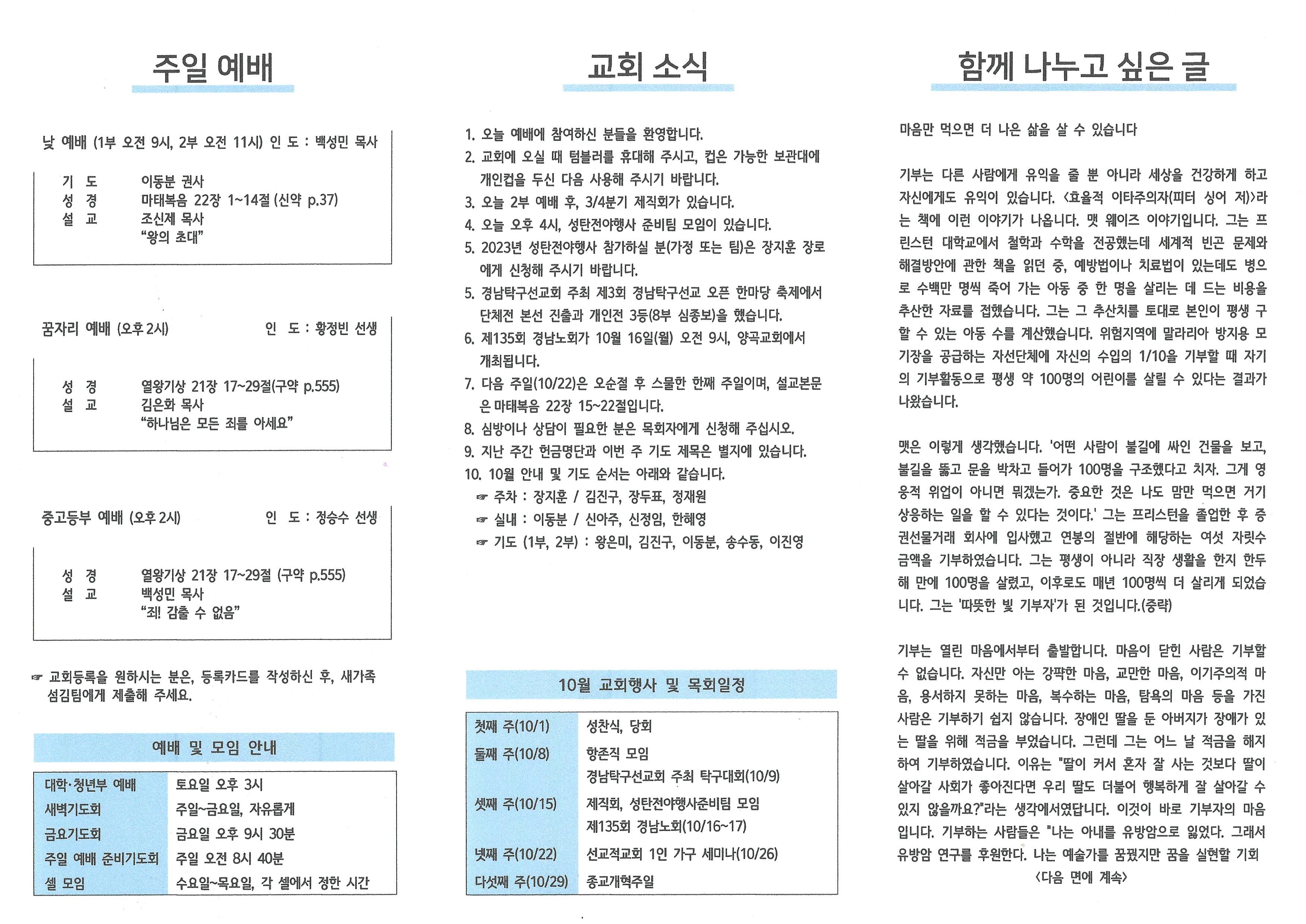 2023년 10월 15일 주보입니다.