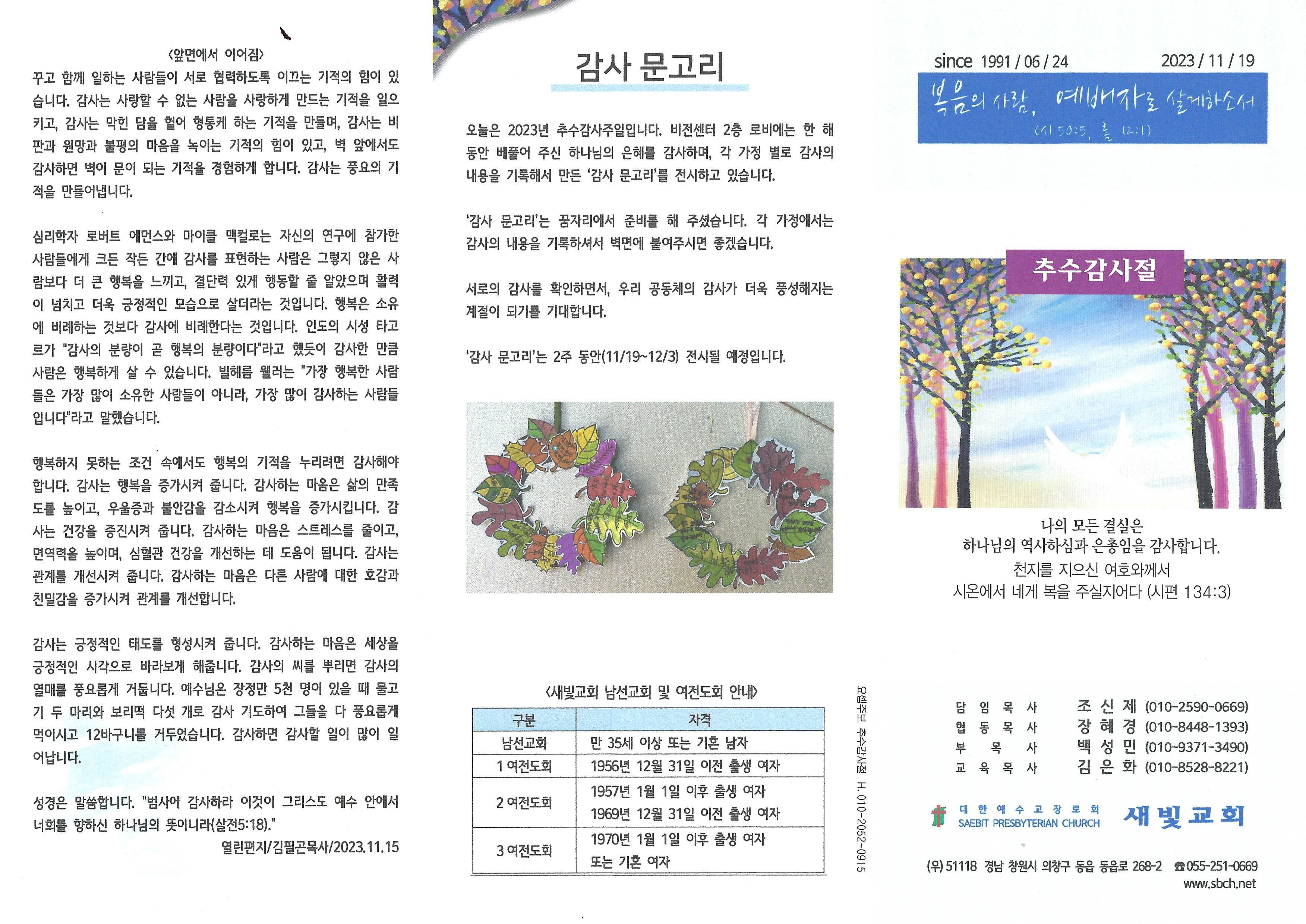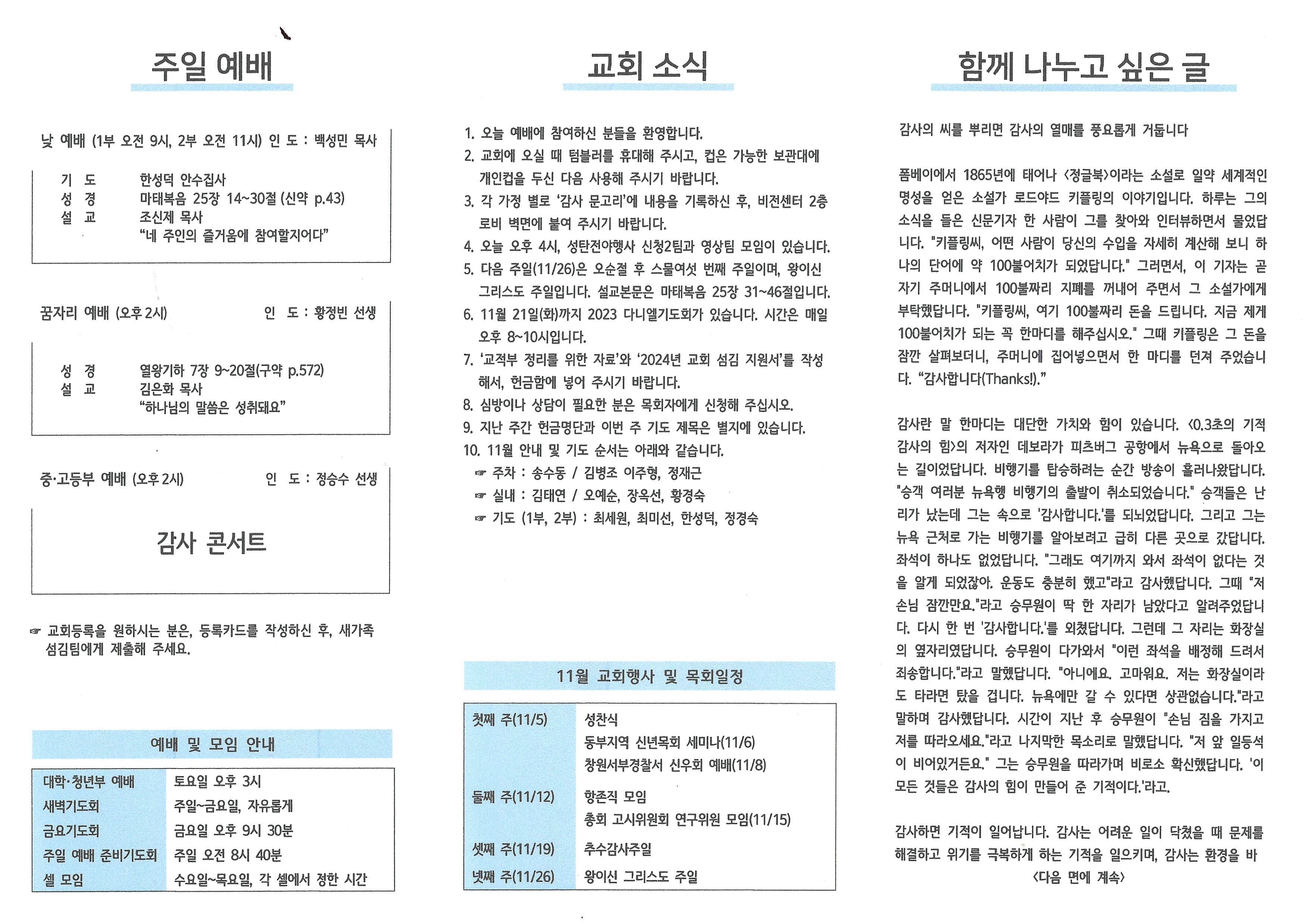 2023년 11월 19일 주보입니다.