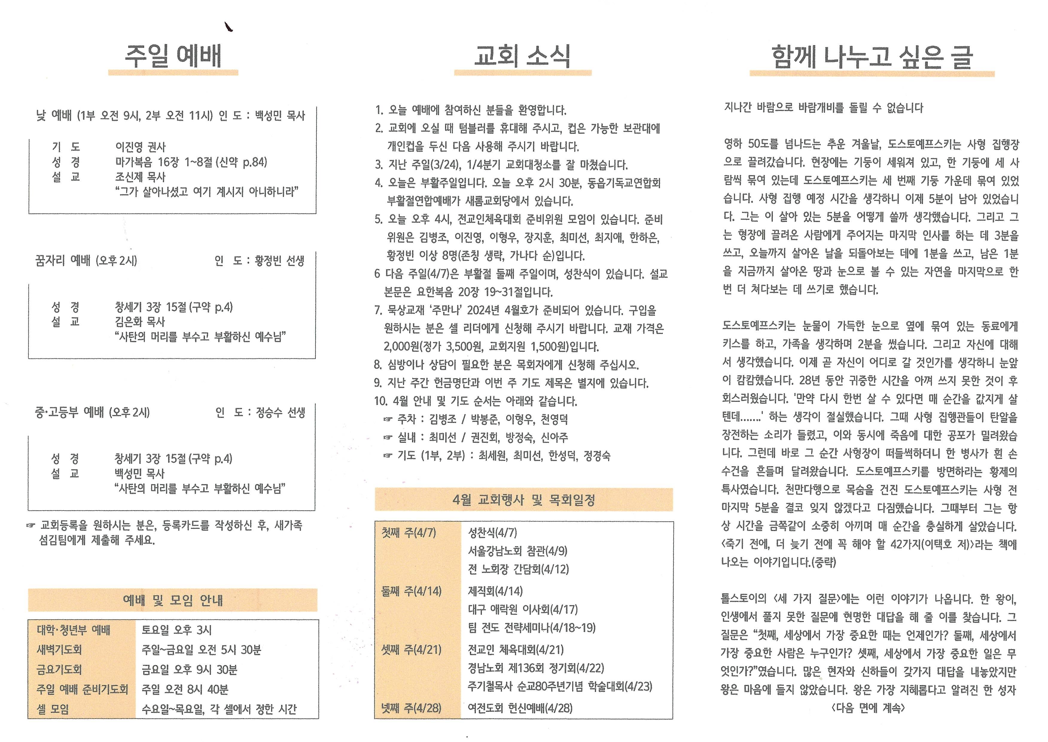 2024년 3월 31일 주보입니다.