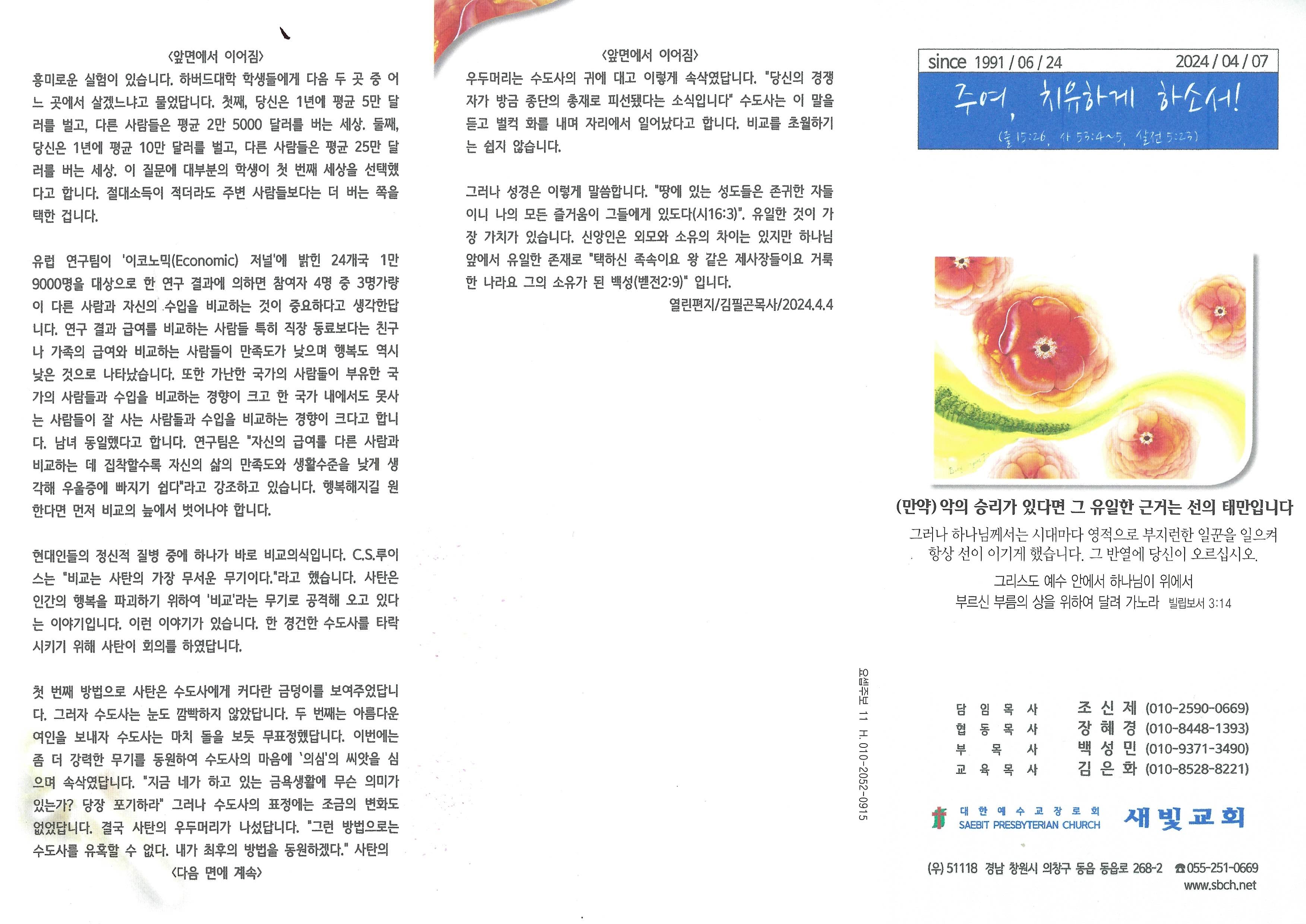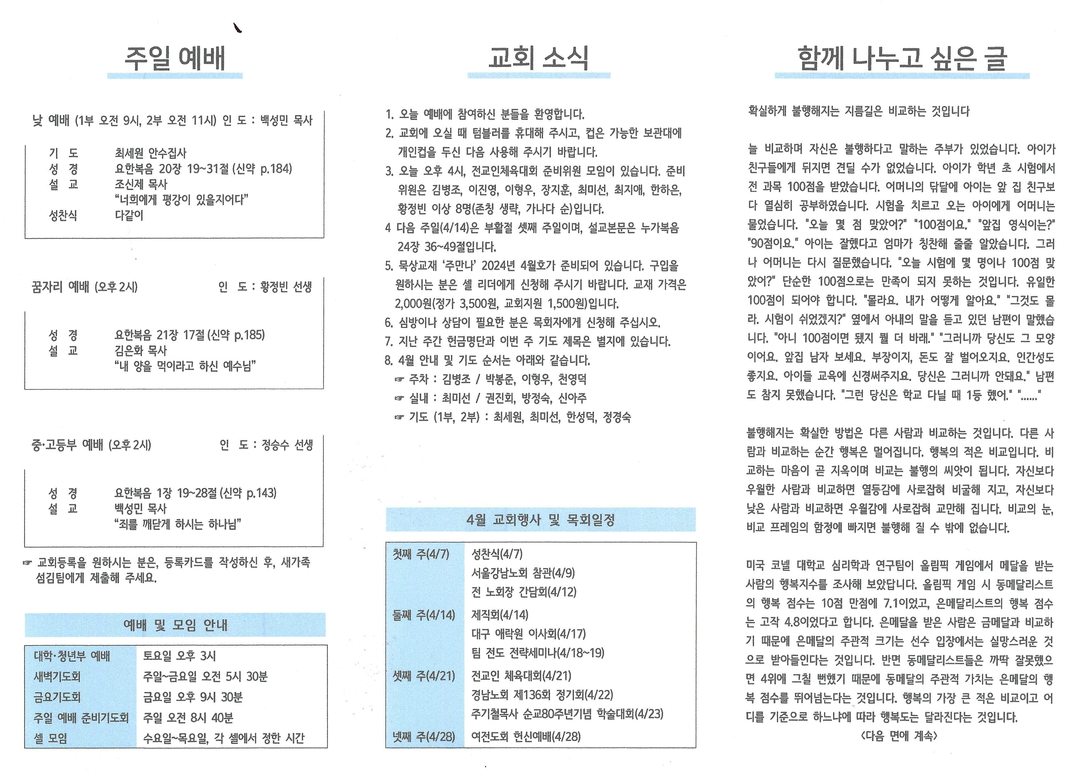 2024년 4월 7일 주보입니다.