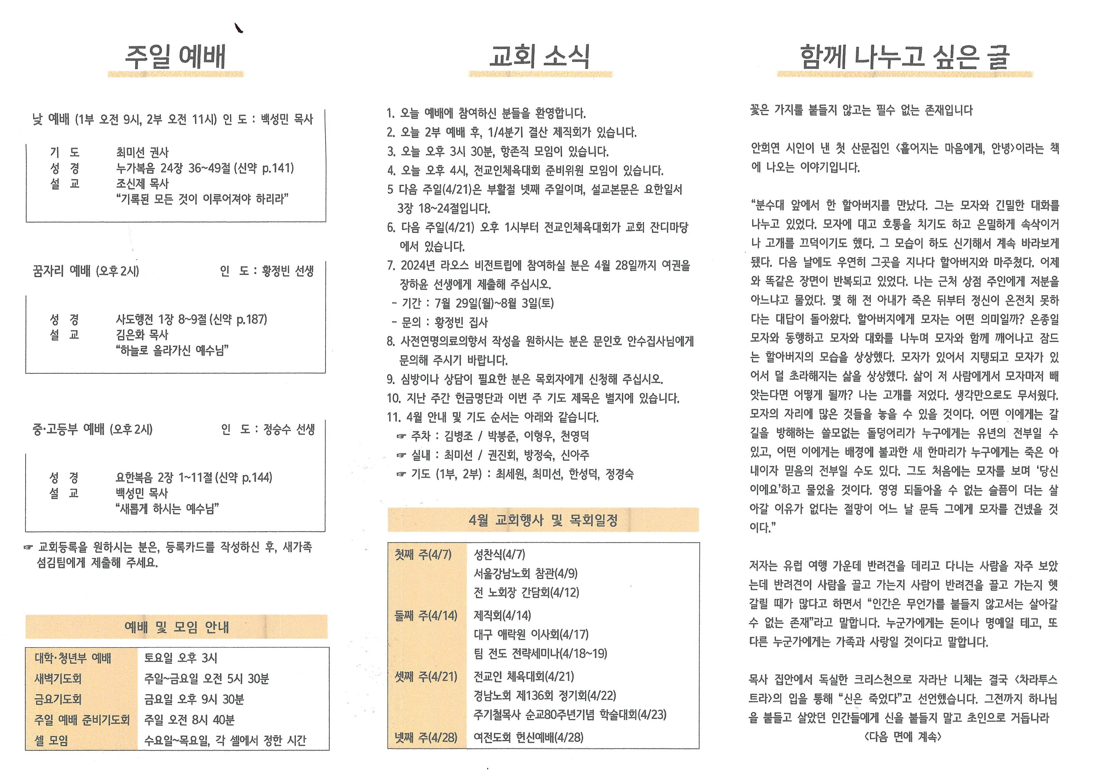 2024년 4월 14일 주보입니다.