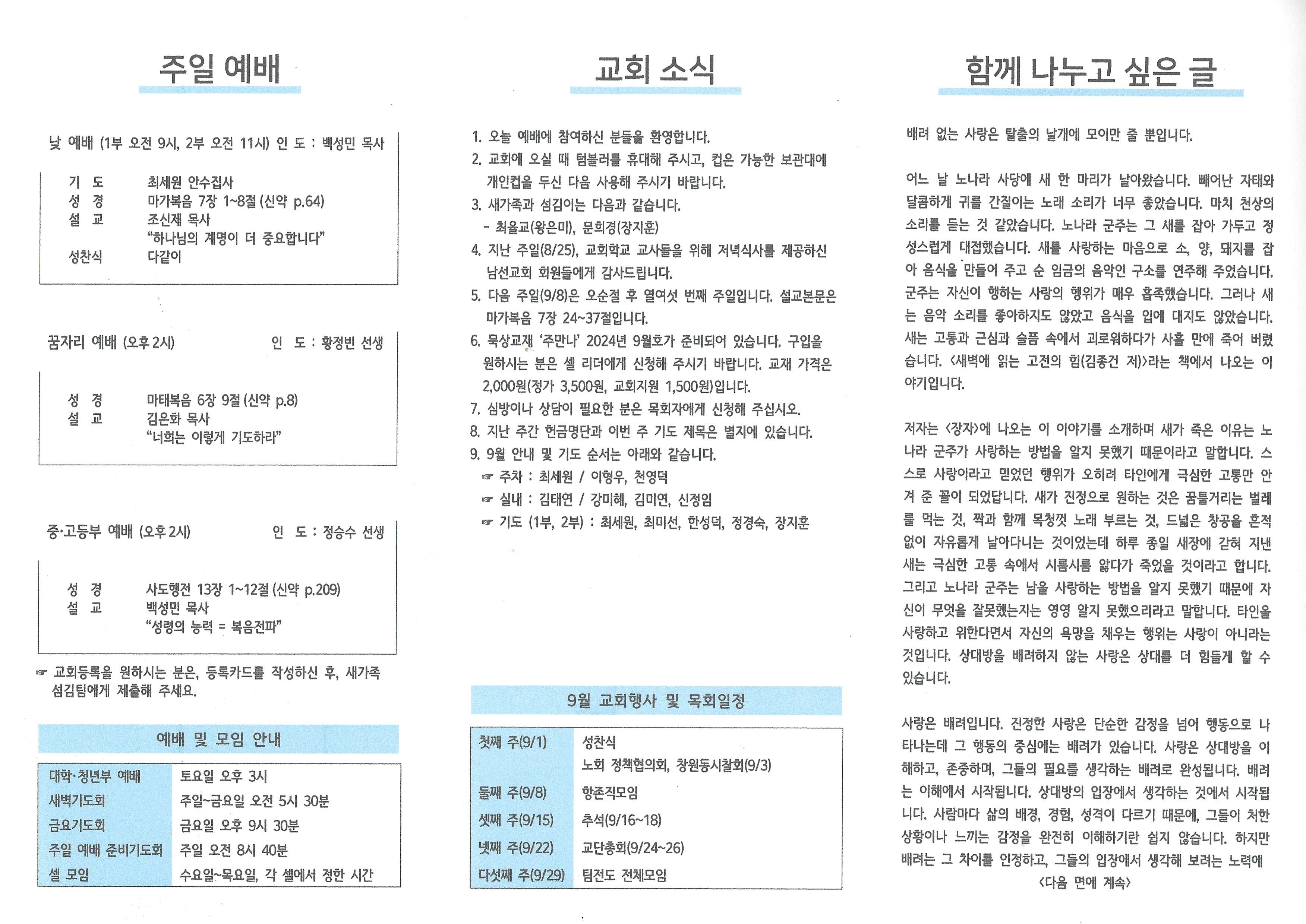 2024년 9월 1일 주보입니다.