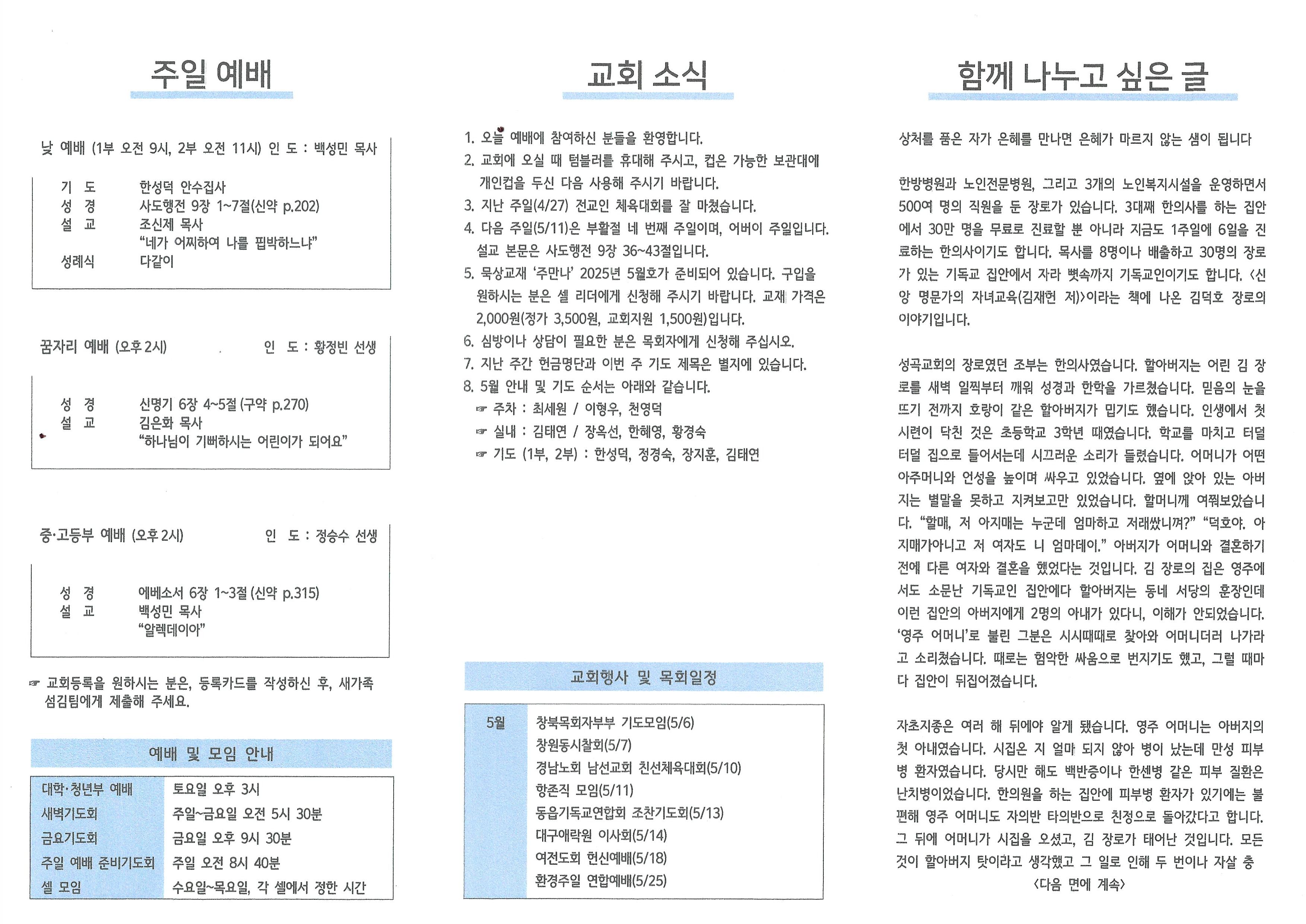 2025년 5월 4일 주보입니다.