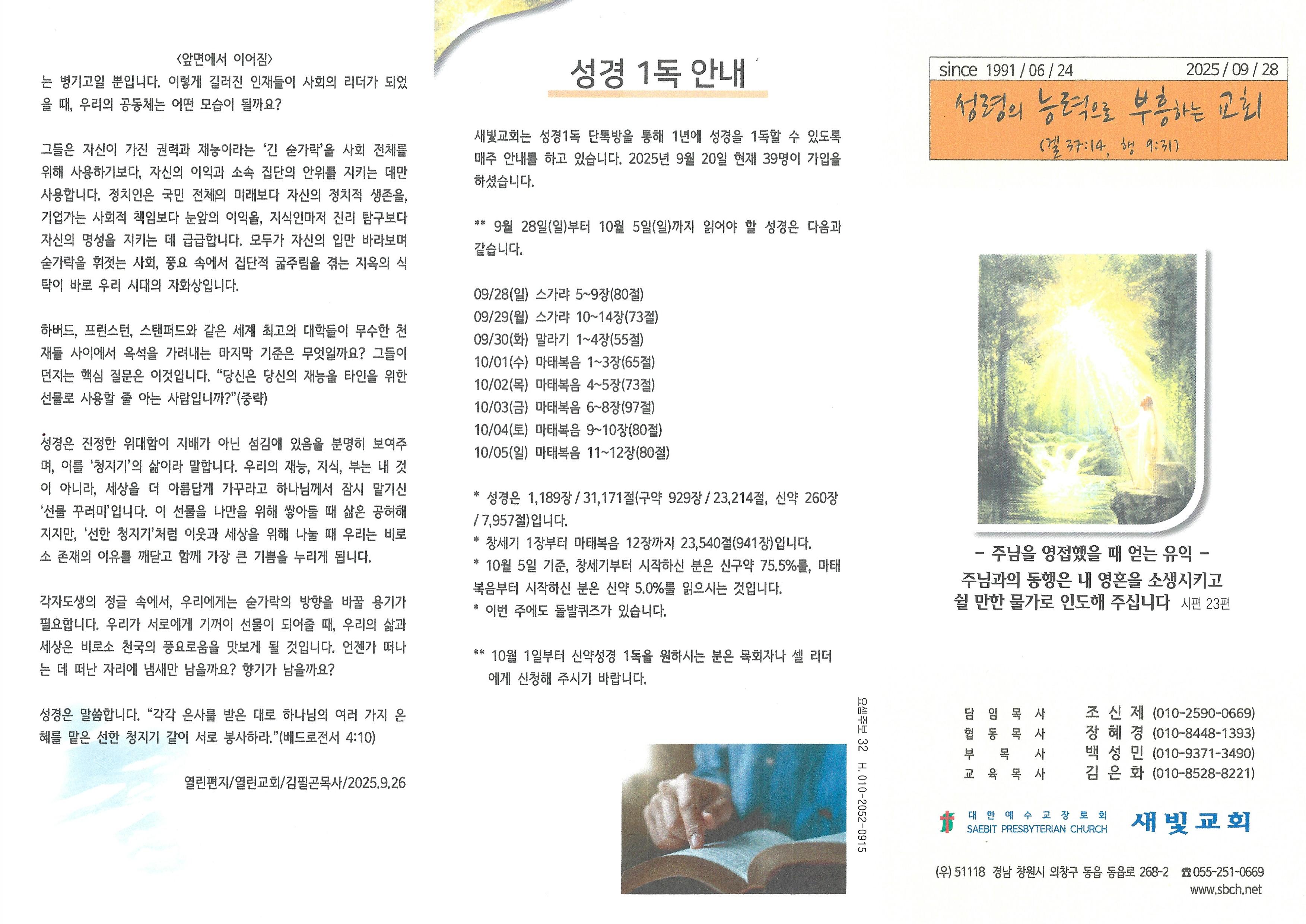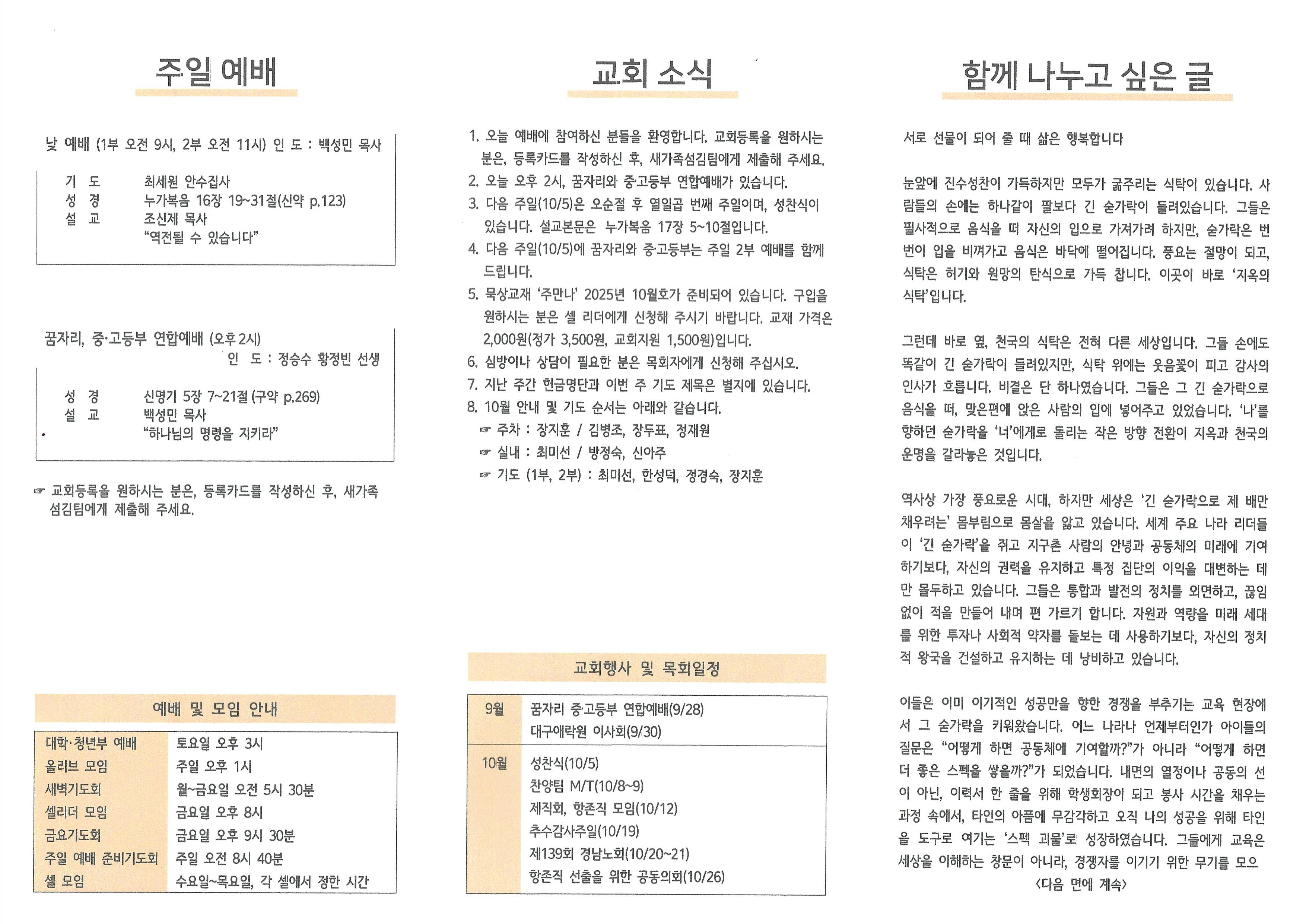 2025년 9월 28일 주보입니다.