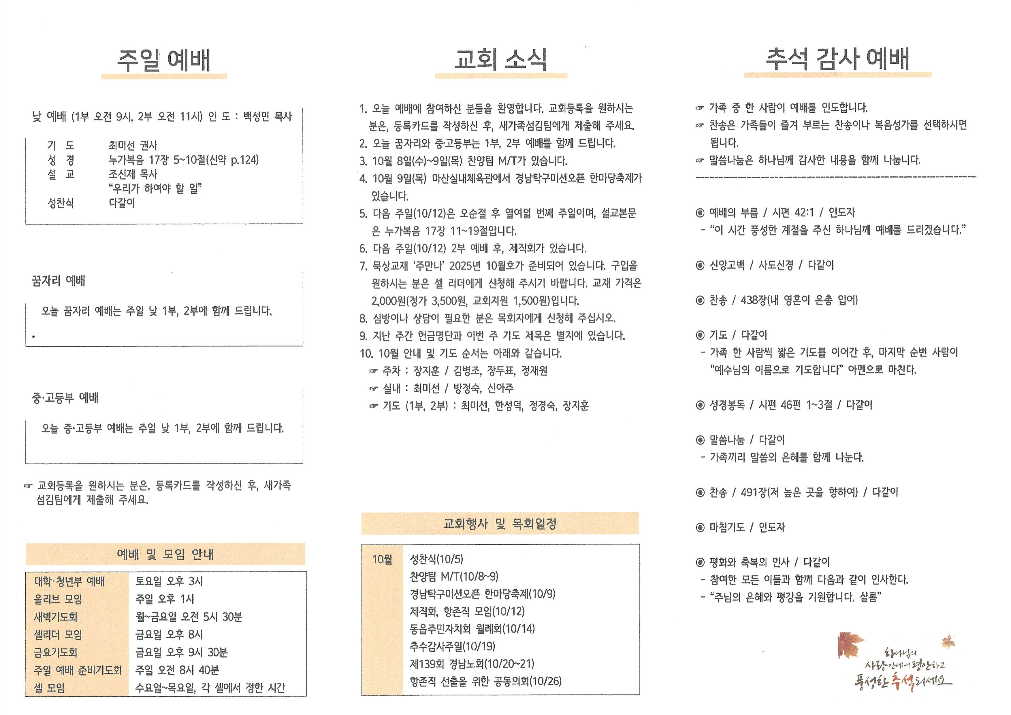 2025년 10월 5일 주보입니다.