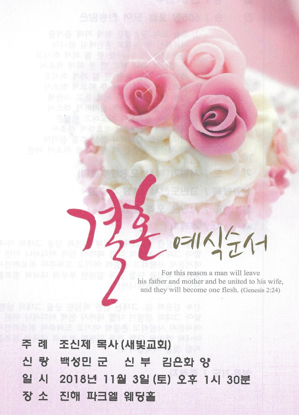 2018년 11월 김은화 전도사 결혼식, 진해 파크엘 웨딩