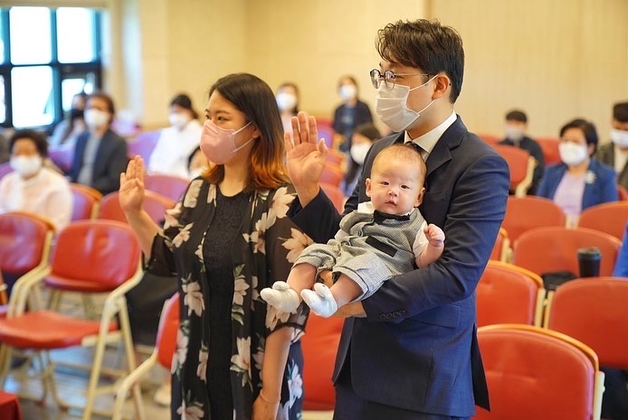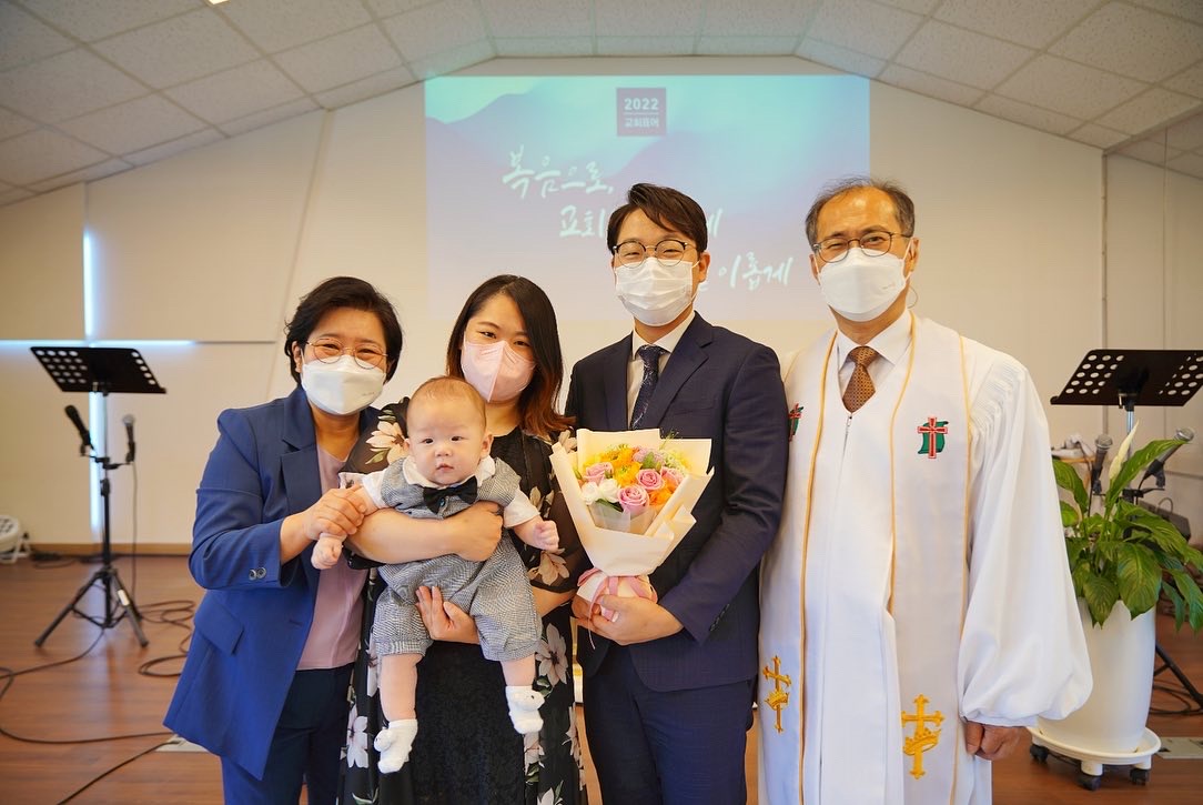 2022년 5월 1일 정승수-박현정 선생님 장남(정찬영)군 유아세례식 사진