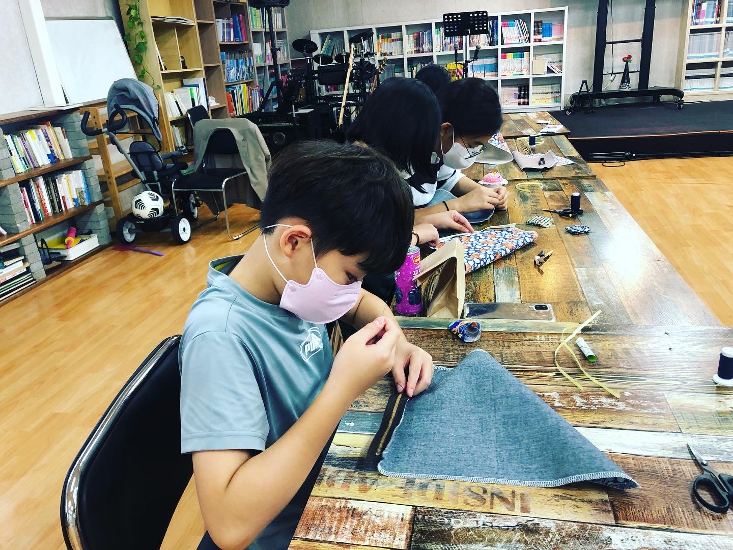 그루터기 작은도서관 바느질 활동(나만의 파우치 만들기)