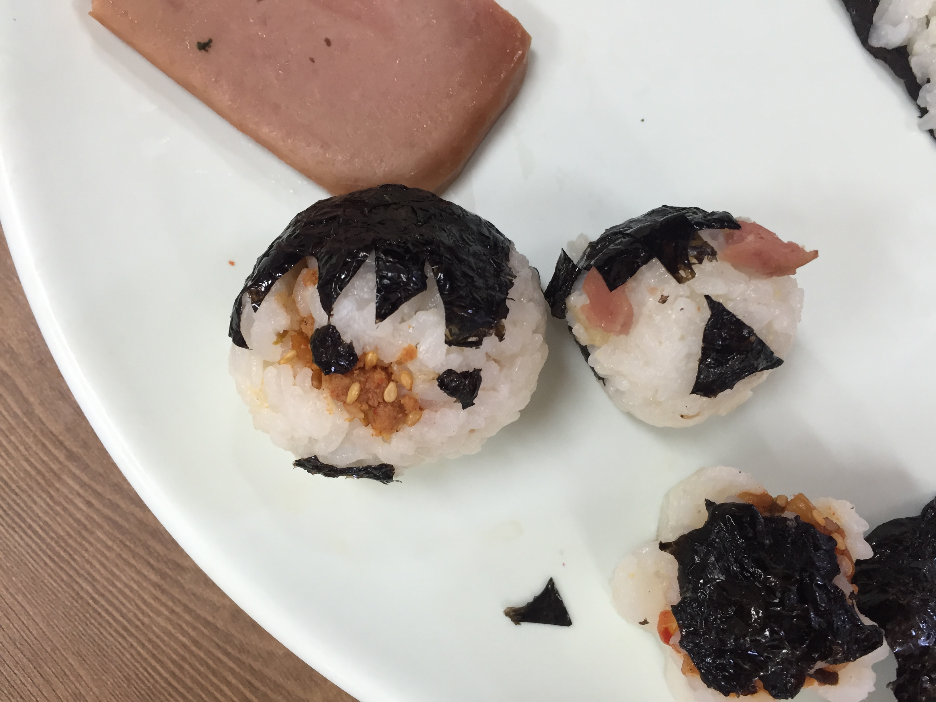 아이들의 창의적인 아이디어로 여러가지 모양의 주먹밥이 완성되었습니다.^^