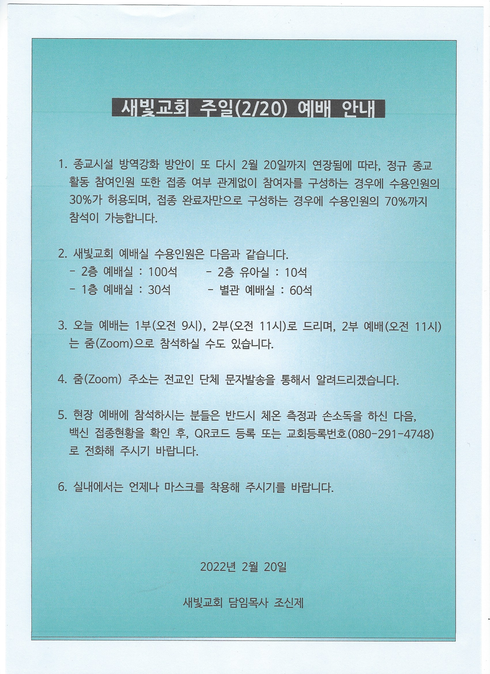 2022년 2월 20일 주일예배 안내