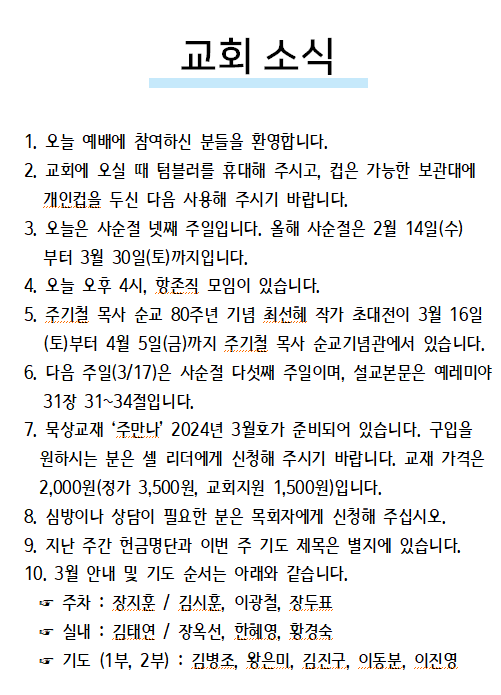 2024년 03월 10일 교회소식