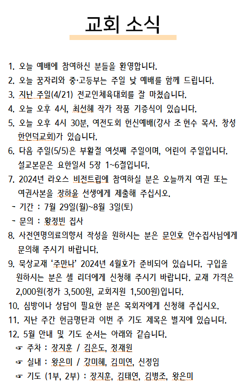 2024년 4월 28일 교회소식