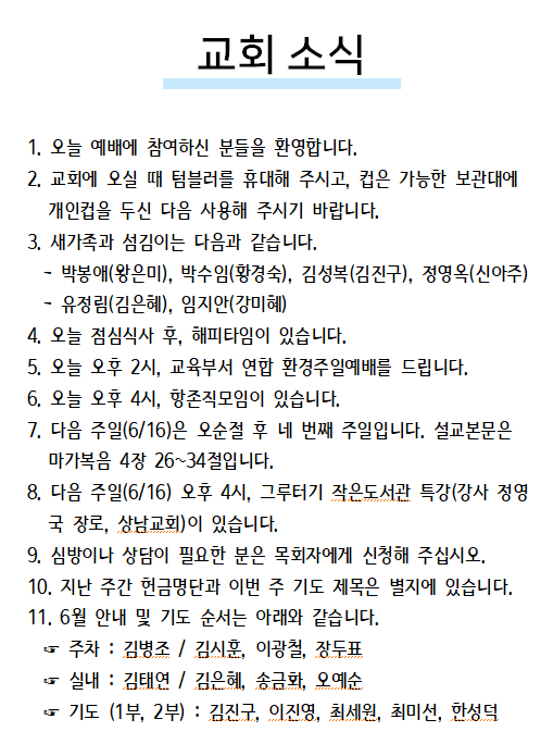 2024년 06월 09일 교회소식