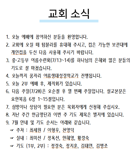 2024년 07월 28일 교회소식