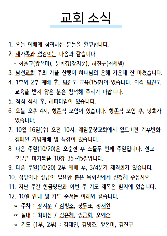 2024년 10월 13일 교회소식