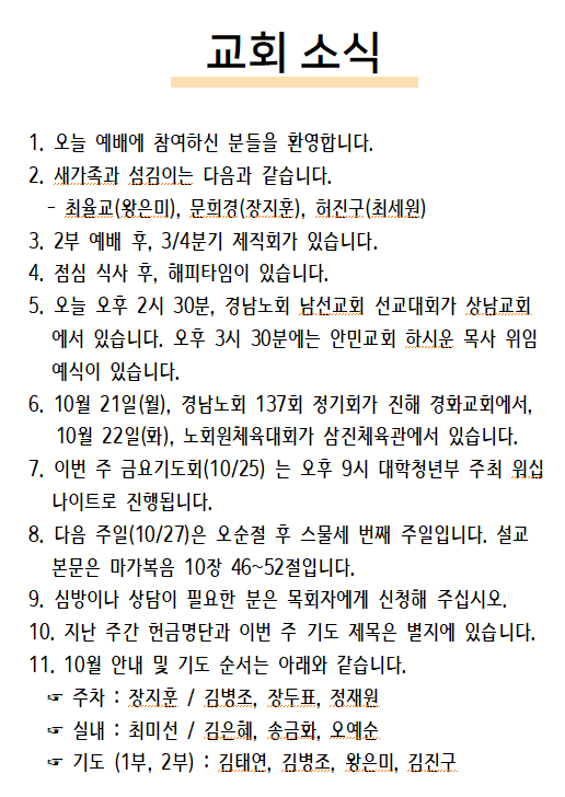 2024년 10월 20일 교회소식