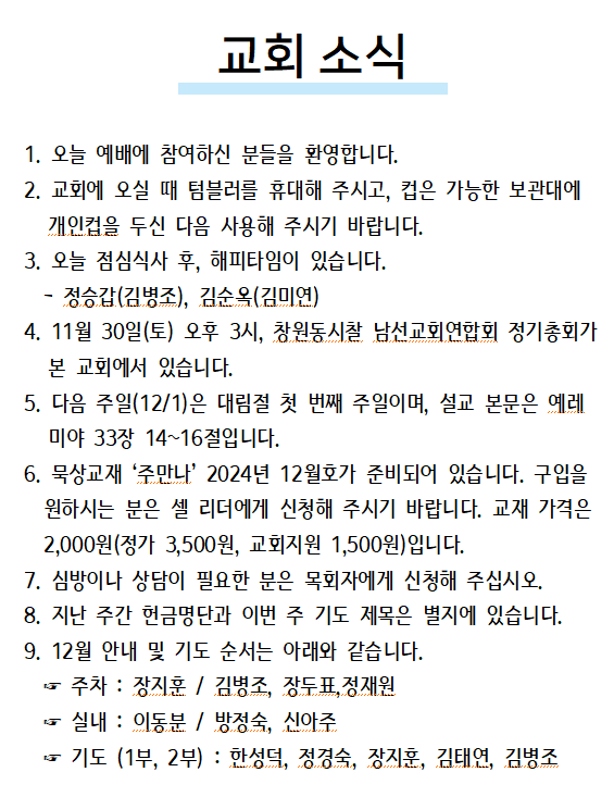 2024년 12월 01일 교회소식