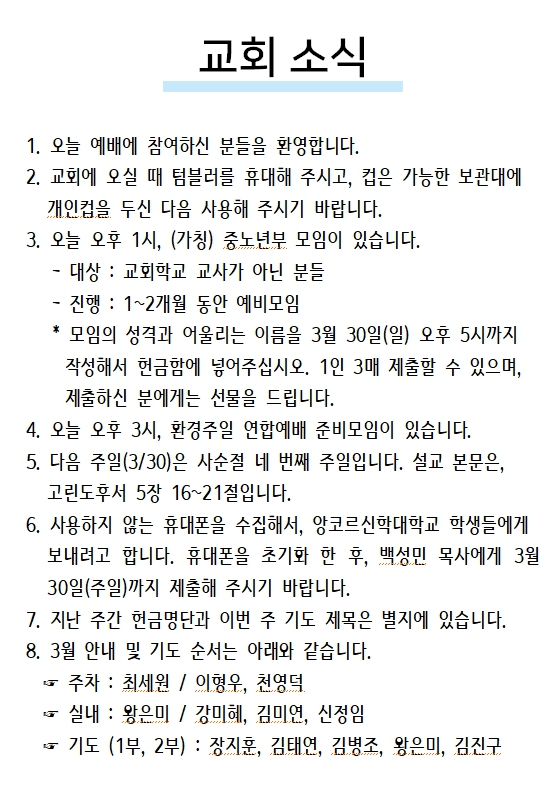 2025년 03월 30일 교회소식