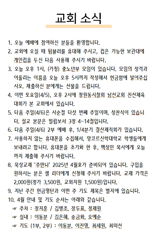 2025년 04월 06일 교회소식