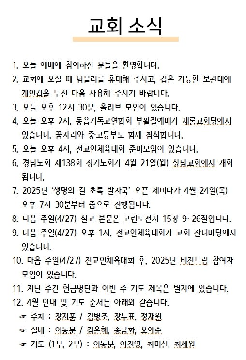 2025년 4월 20일 교회소식
