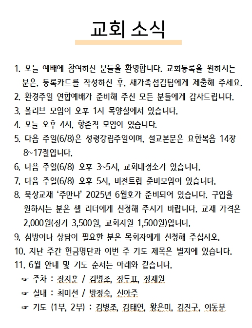 2025년 06월 01일 교회소식