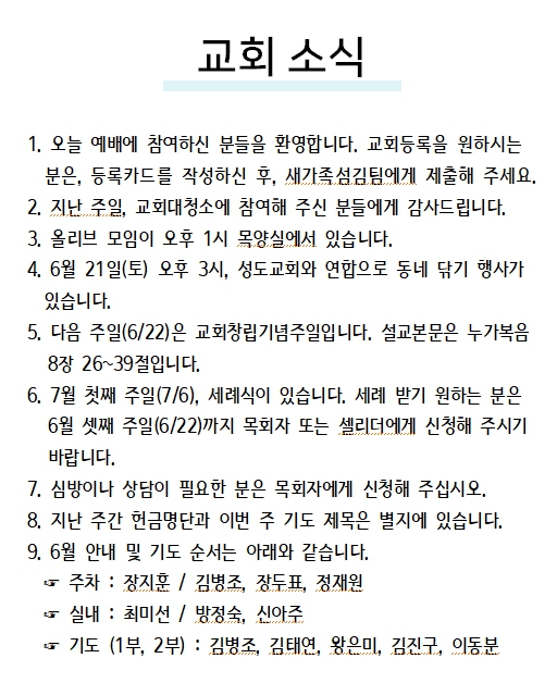 2025년 06월 15일 교회소식