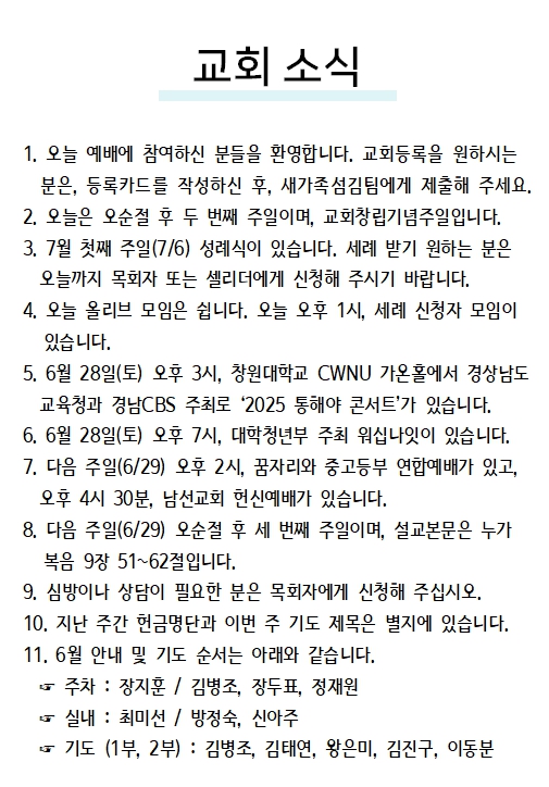 2025년 06월 29일 교회소식